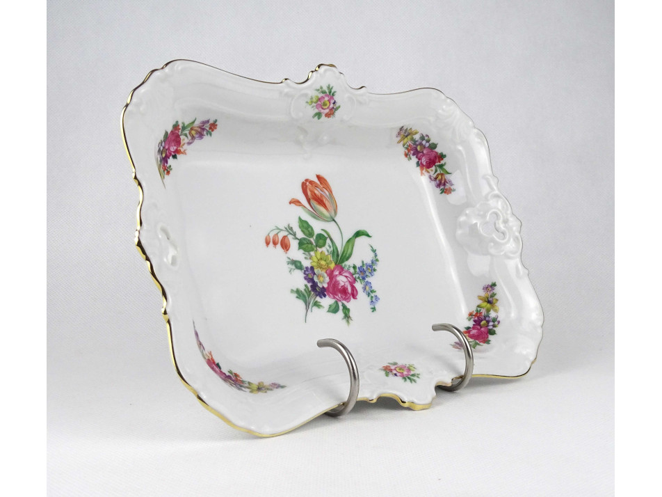Régi virágmintás szögletes Seltmann Weiden porcelán tál 25 x 18.5 cm