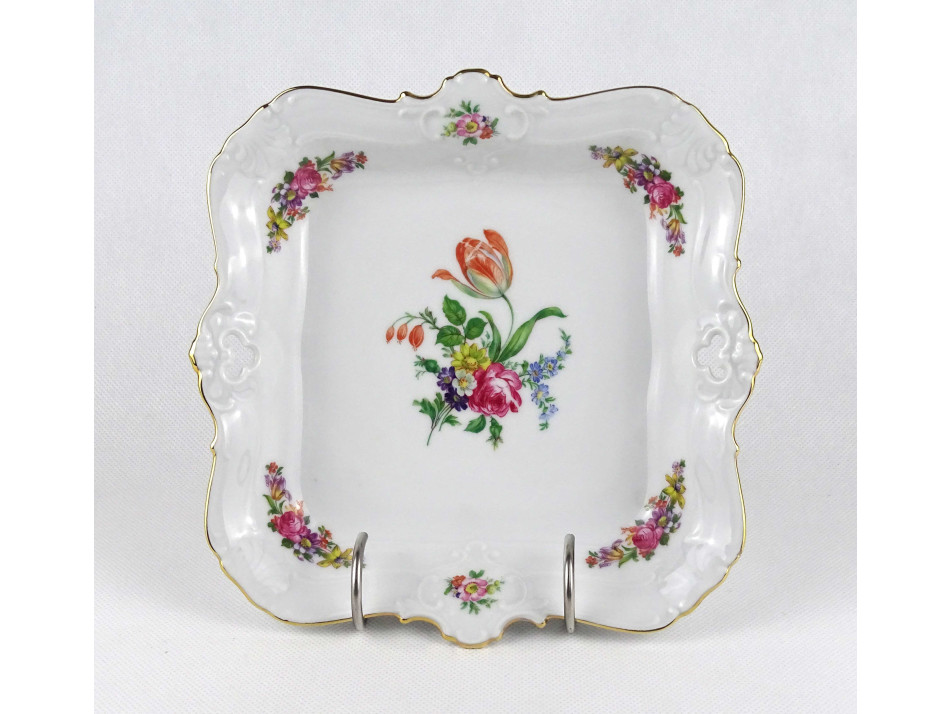 Régi négyzet alakú virágmintás Seltmann Weiden porcelán tál 21.5 x 21 cm