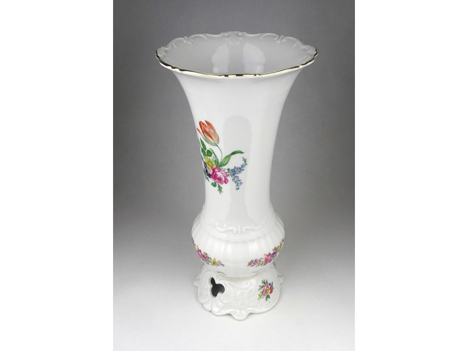 Hibátlan állapotú, jelzett, nagyméretű virágmintás aranyozott Seltmann Weiden porcelán váza, díszváza.