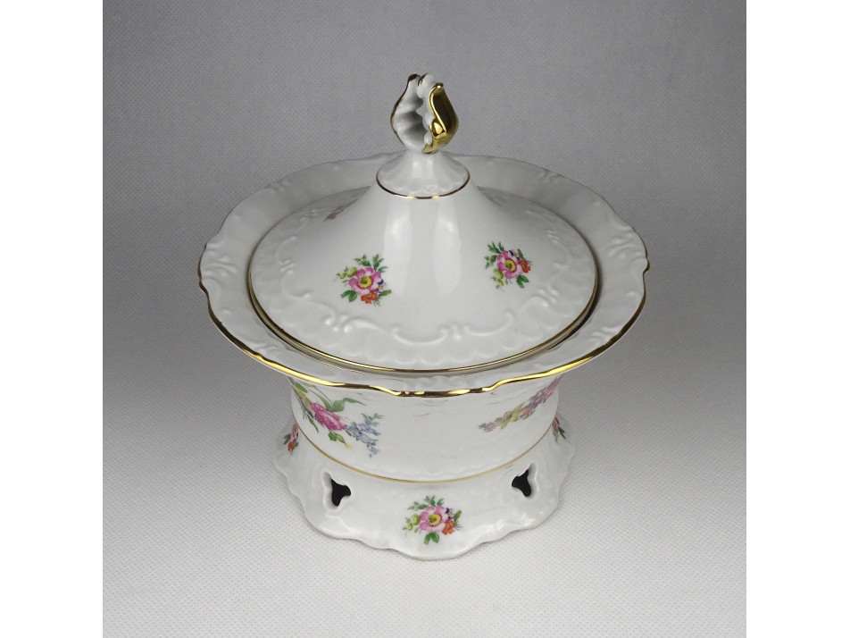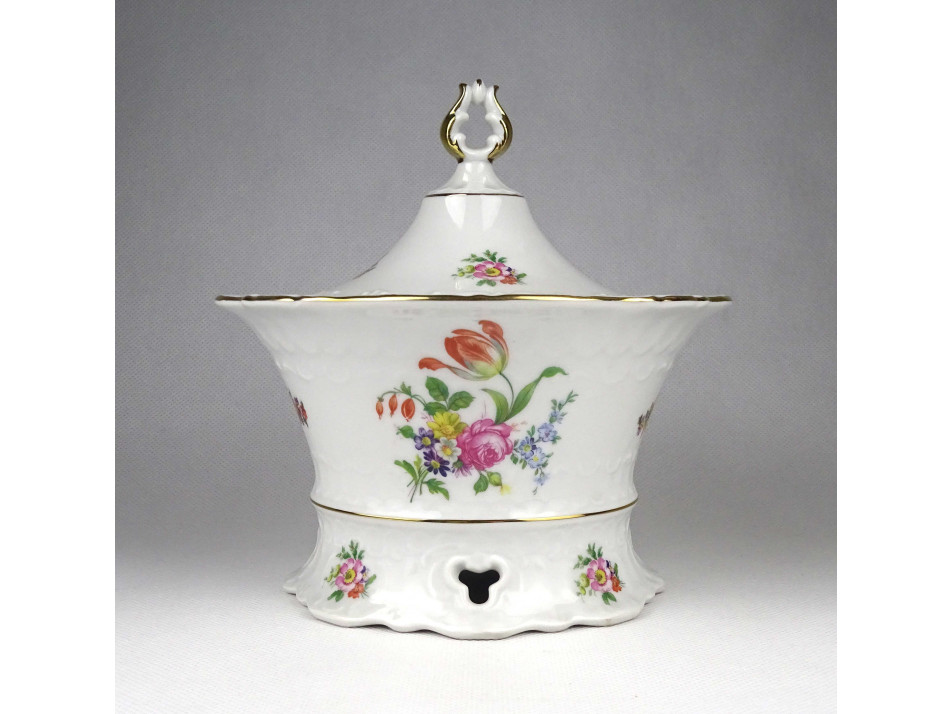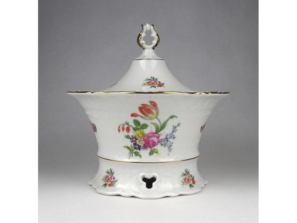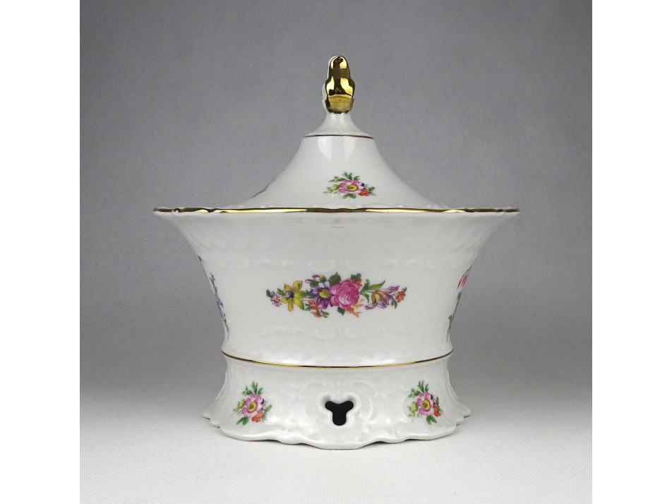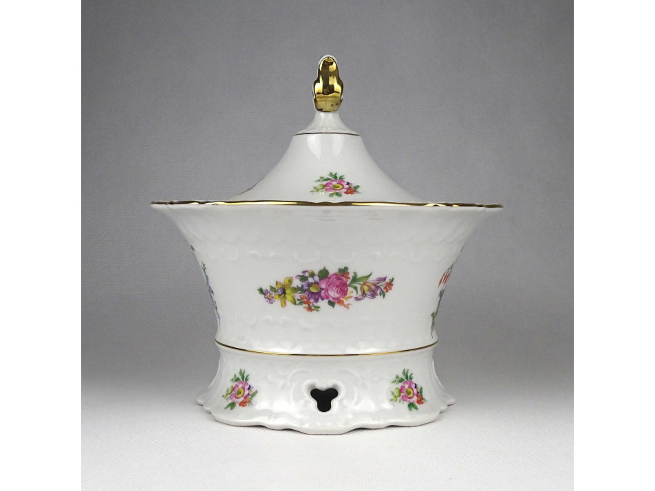 Hibátlan állapotú, jelzett, nagyméretű virágmintás aranyozott Seltmann Weiden porcelán bonbonier, cukorkínáló.