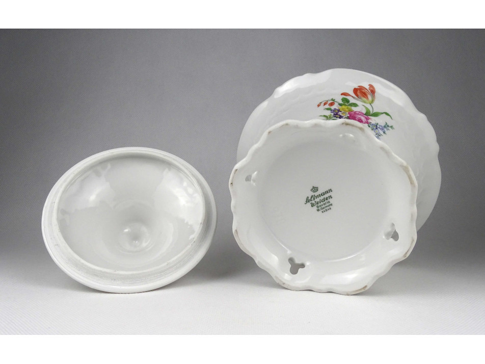 Régi nagyméretű virágmintás Seltmann Weiden porcelán bonbonier 16.6 cm