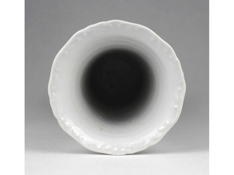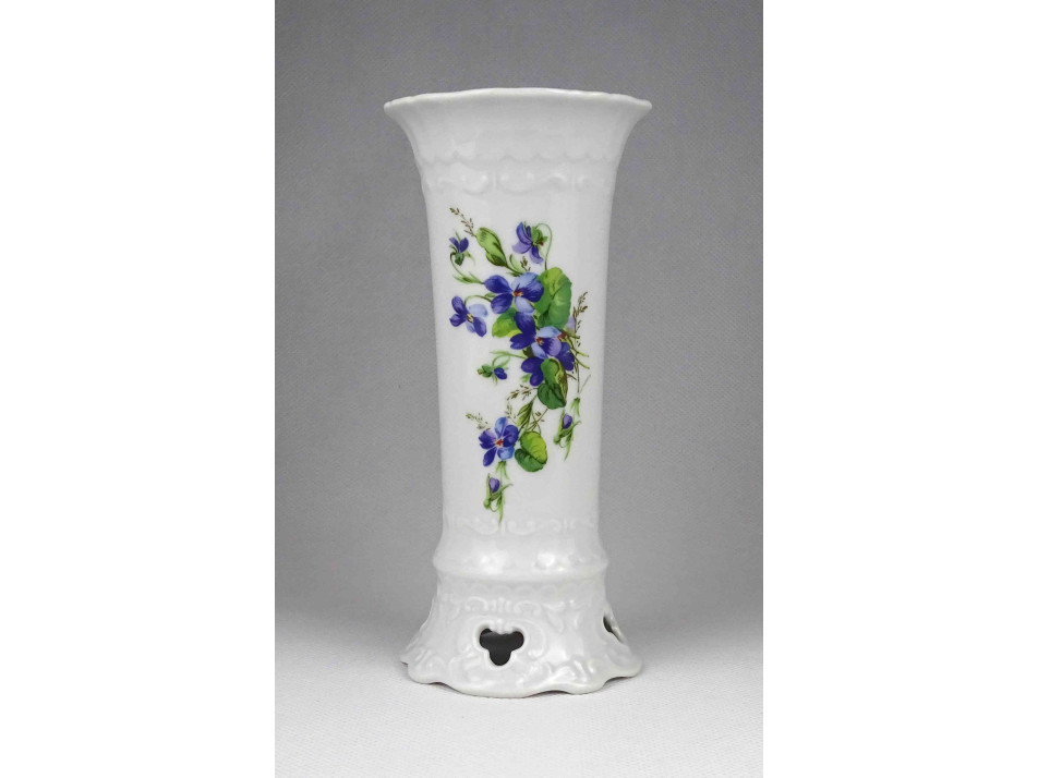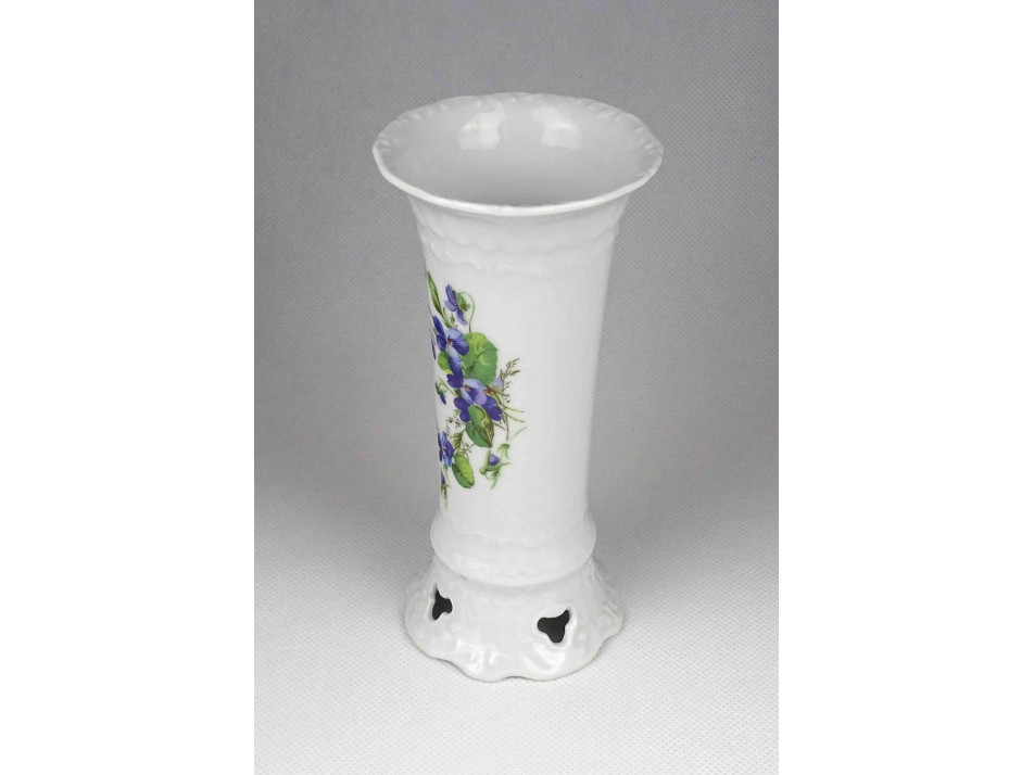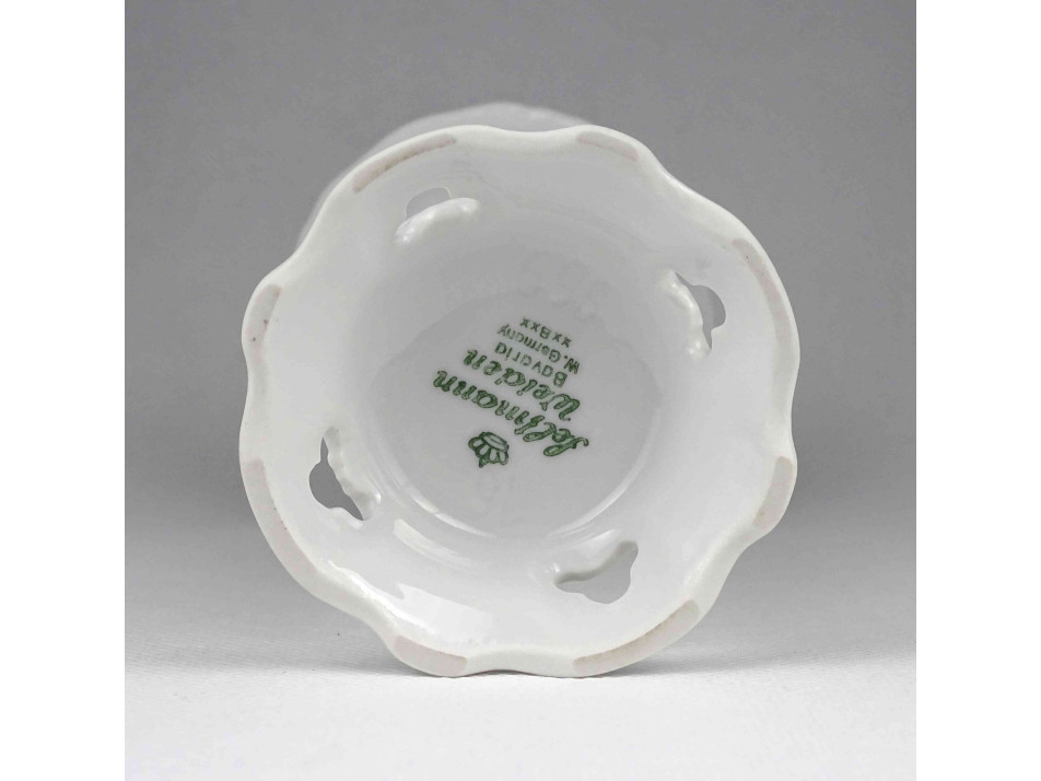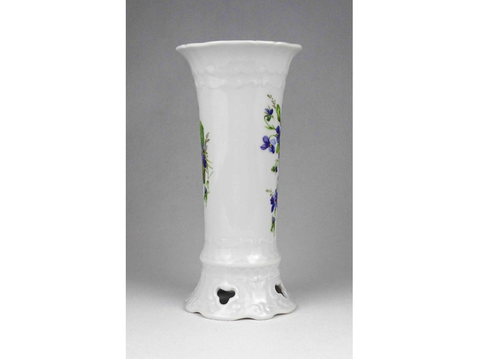 Hibátlan állapotú, jelzett, kék virágmintás, áttört talpú Seltmann Weiden porcelán kis váza, díszváza.