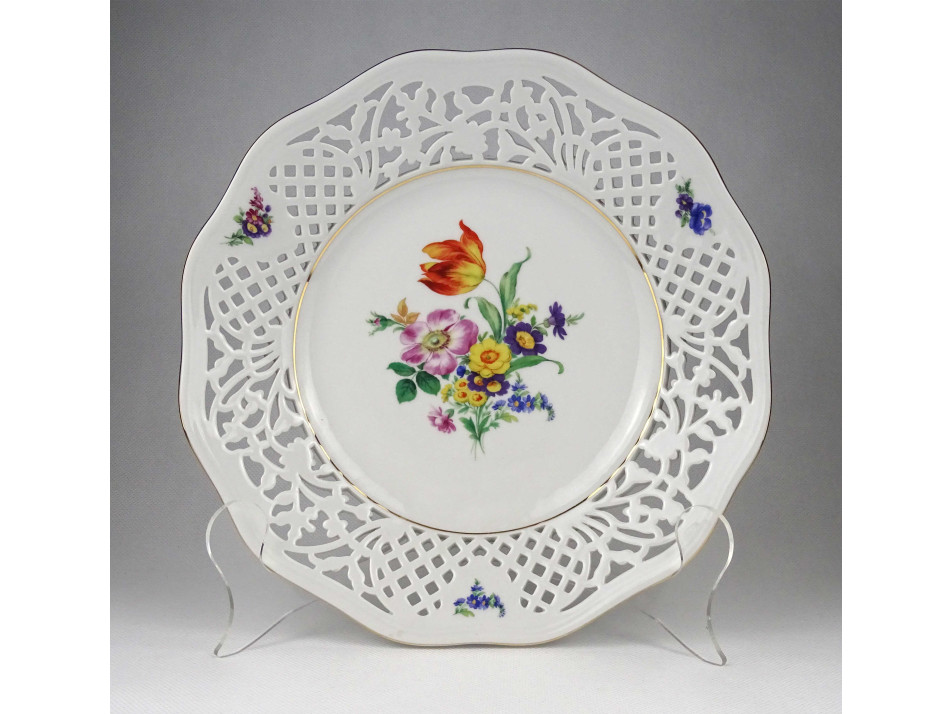 Régi áttört peremű virágmintás cseh Thun porcelán tál 27 cm