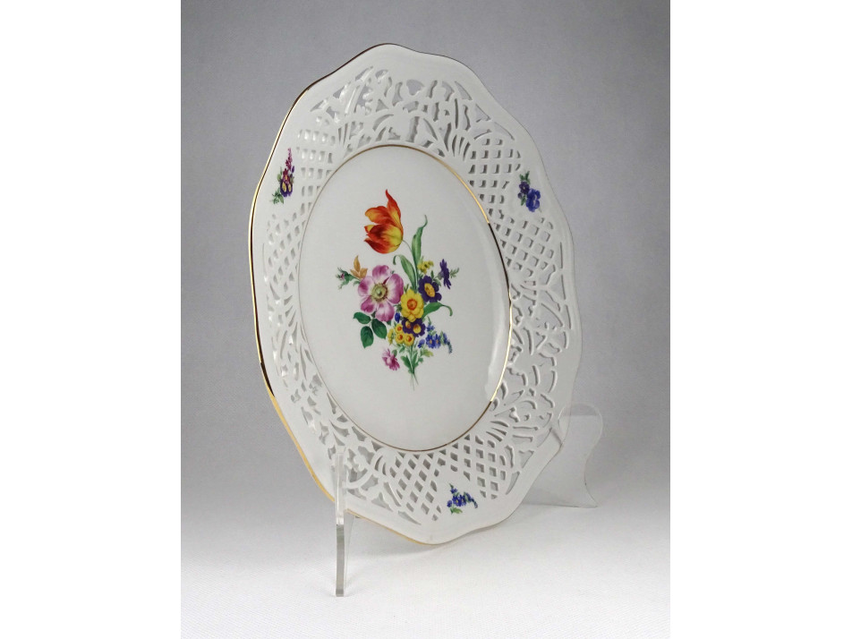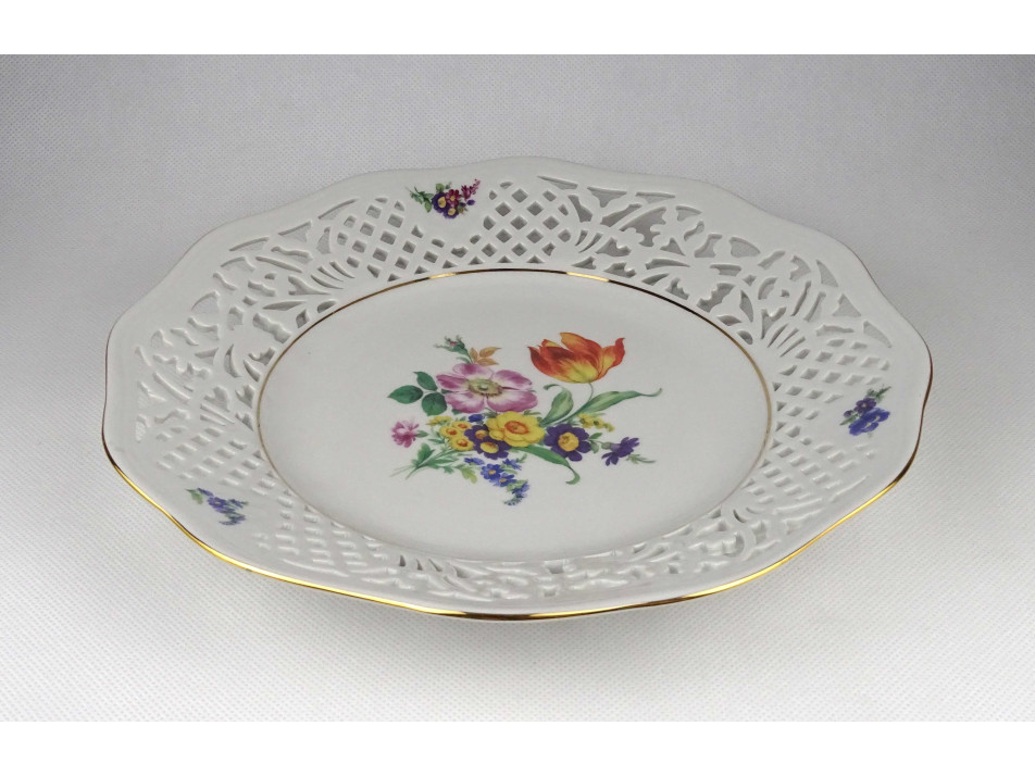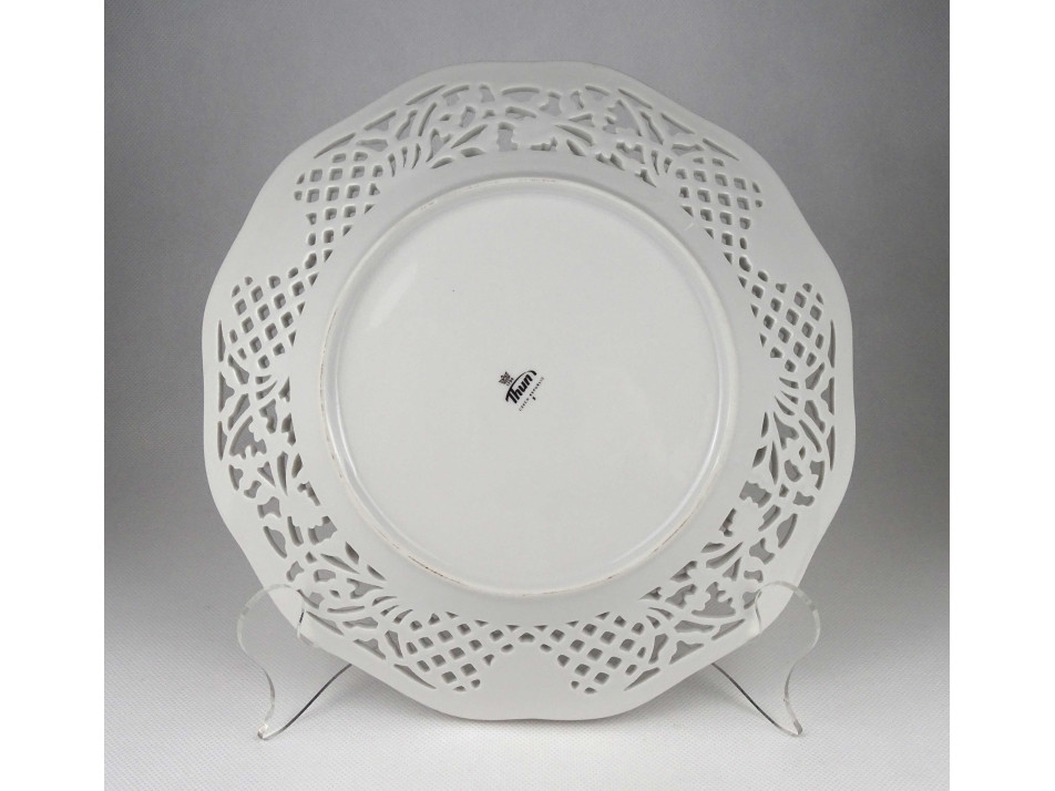 Régi, hibátlan állapotú, áttört peremű, aranyozott szélű, virágmintás, jelzett Thun cseh porcelán tál, kínáló tál.