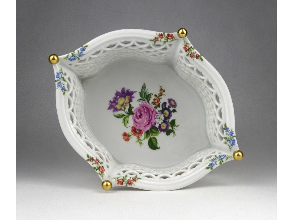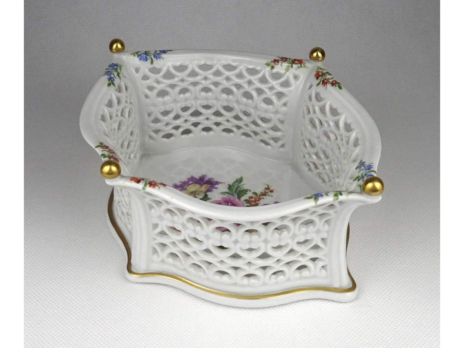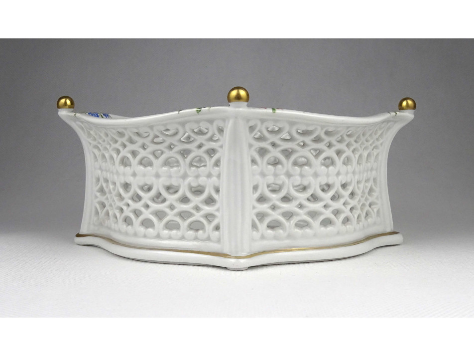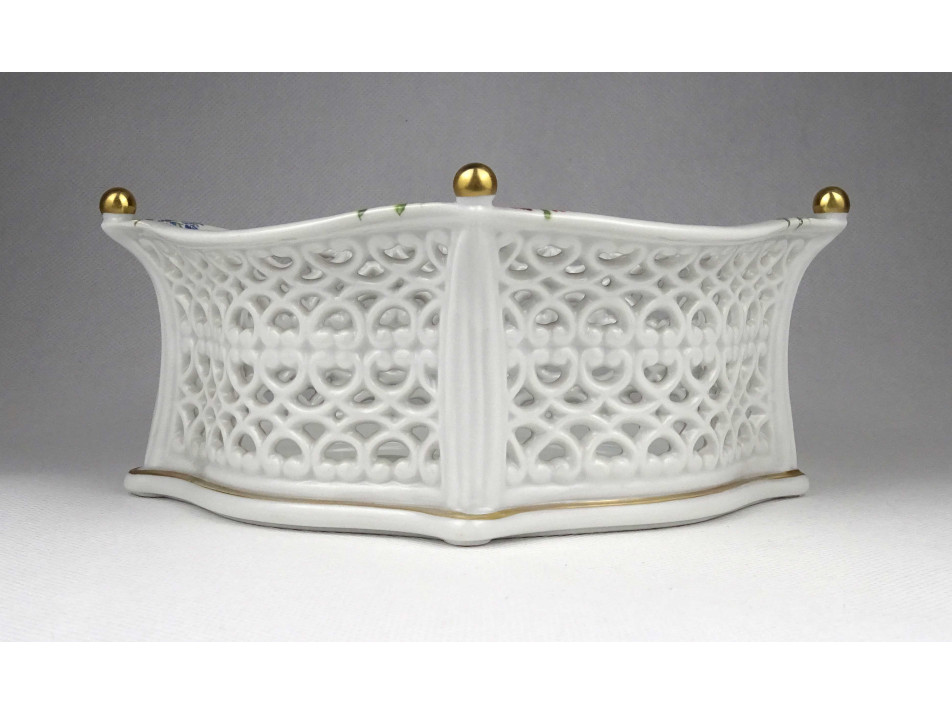 Áttört falú Wallendorf porcelán kosár asztalközép 20 x 17 cm