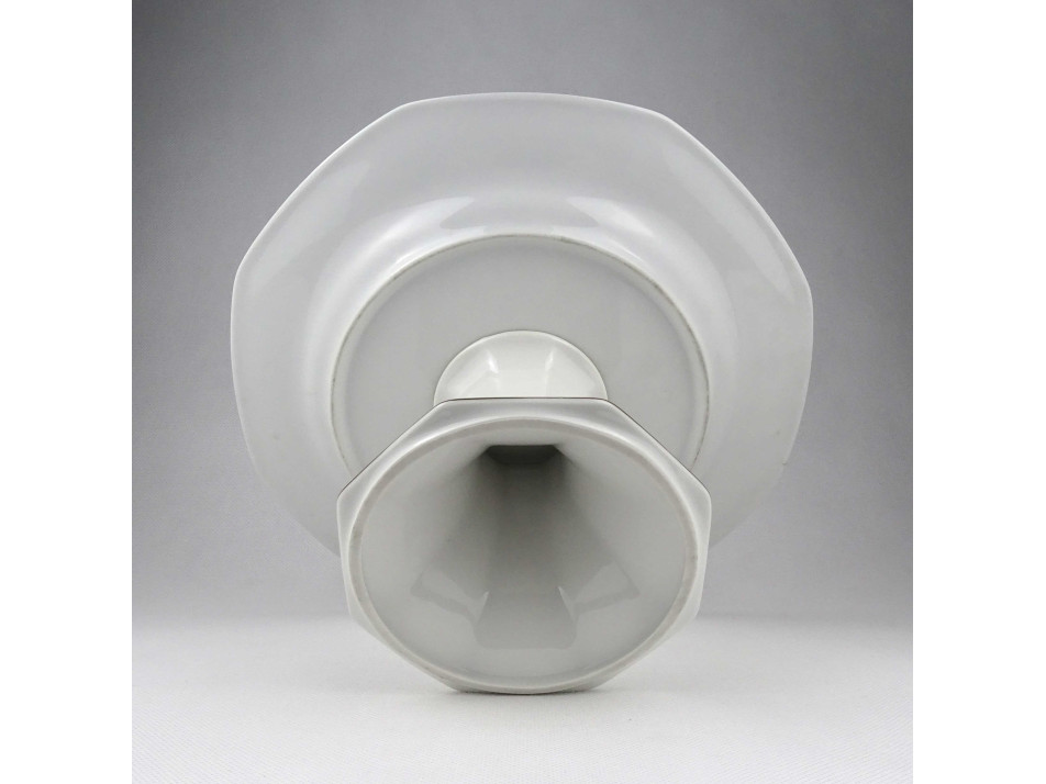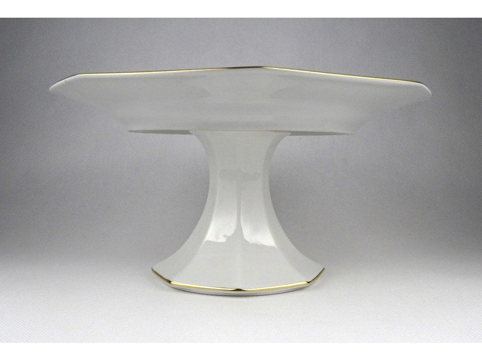 Régi, hibátlan állapotú, festetlen, arany szegélyes, jelzetlen porcelán talpas tortatál, torta kínáló.