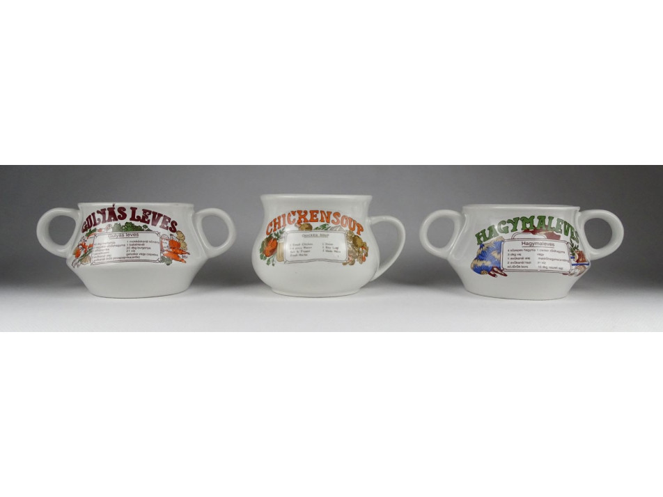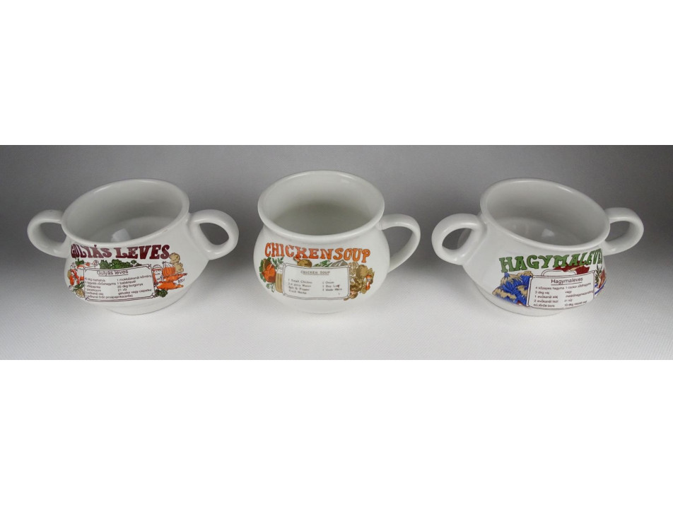 Három darab szép állapotú, retro, kis méretű porcelán leveses tálka.