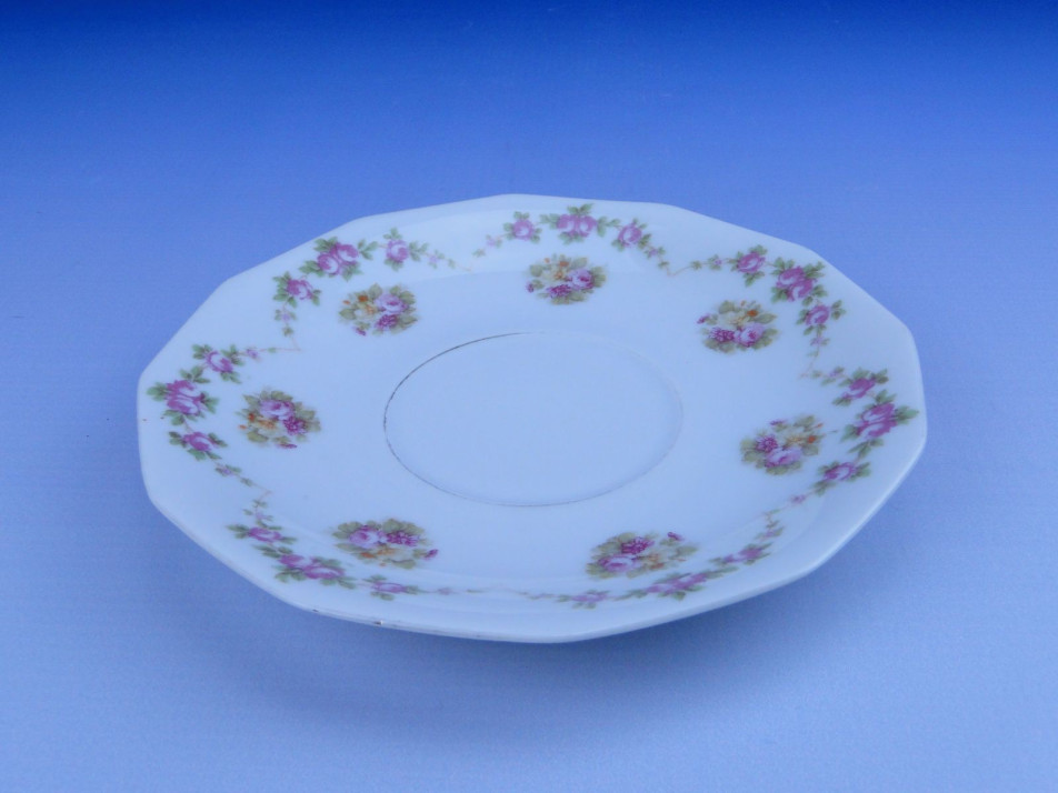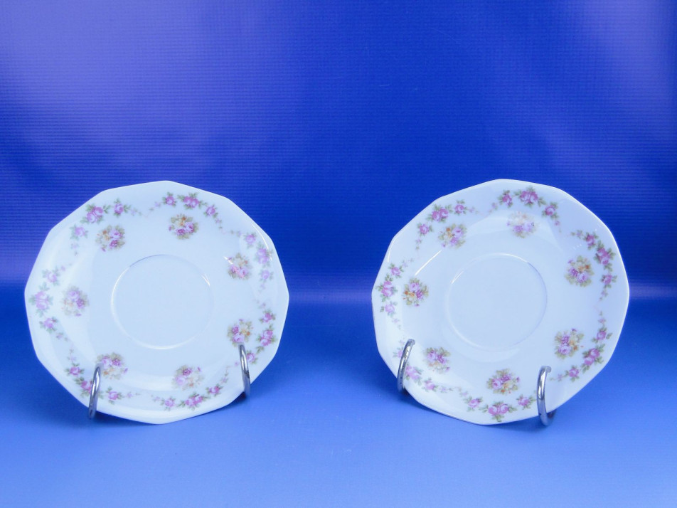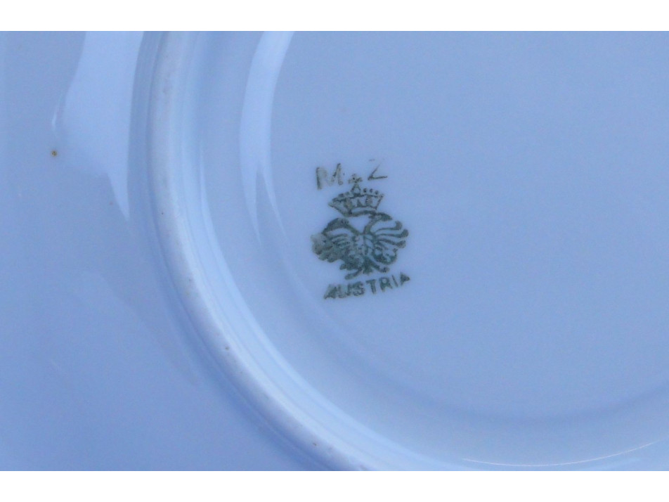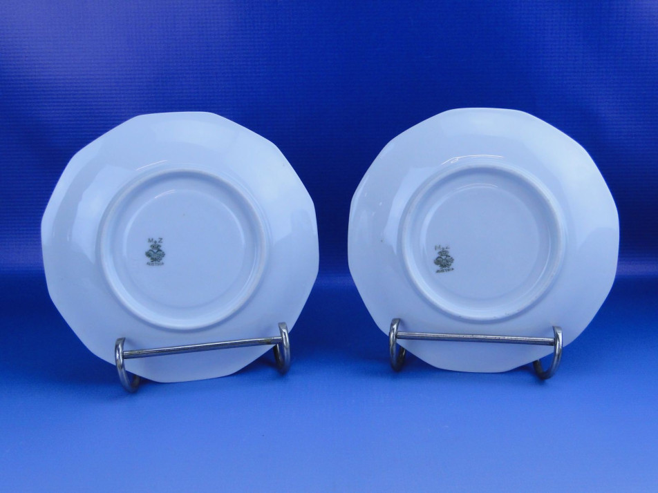 2 db egyforma apró virágmintás szép állapotú jelzett osztrák porcelán teáscsésze alátét tányér. Alján zöld színű koronás jelzés: