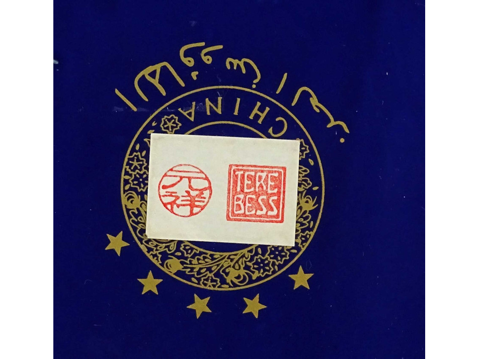 Alján arany színű CHINA felirat és kalligrafikus jelzés, lásd fotó. Mellette, részben rajta papírcímke TEREBESS felirattal.