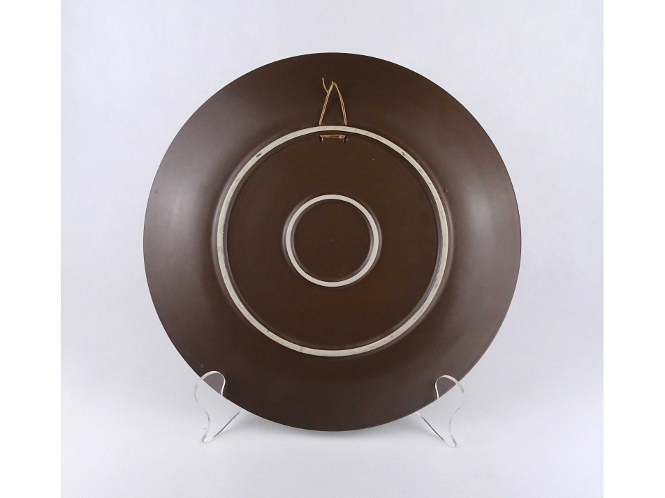 Hibátlan állapotú, nagyméretű, akasztási lehetőséggel rendelkező, a Magyar Néphadsereg által adományozott plasztikus díszítésű porcelán dísztányér, falitányér, falitál. Rajta rakéták, repülőgépek és egyébb légvédelmi eszközök láthatóak.
