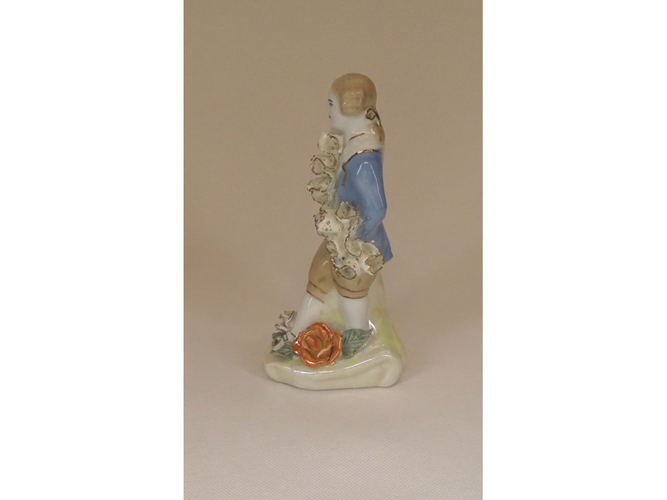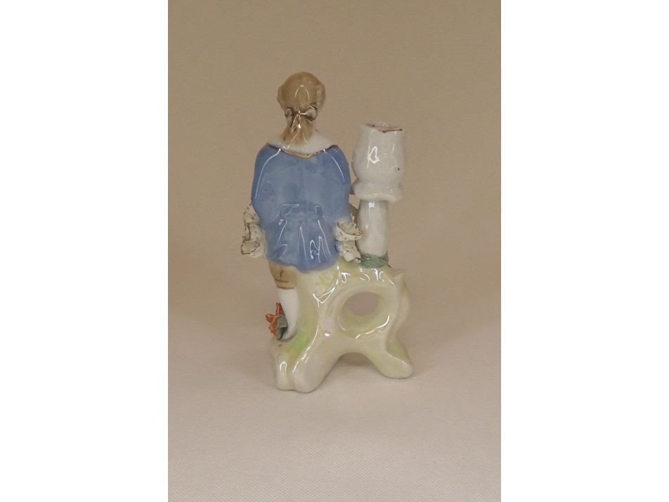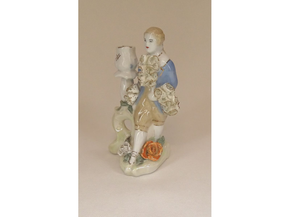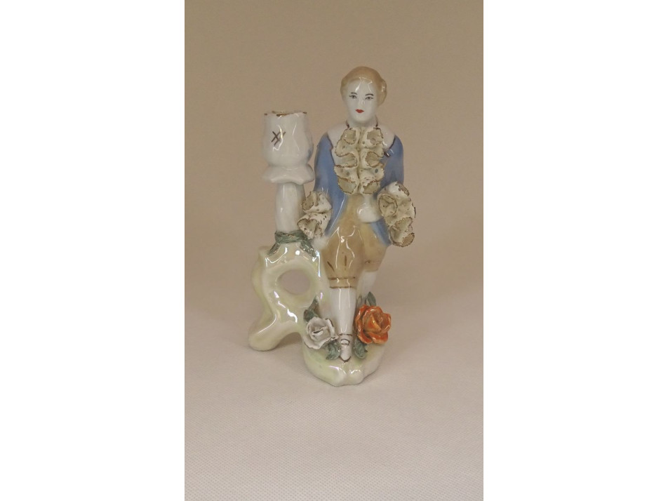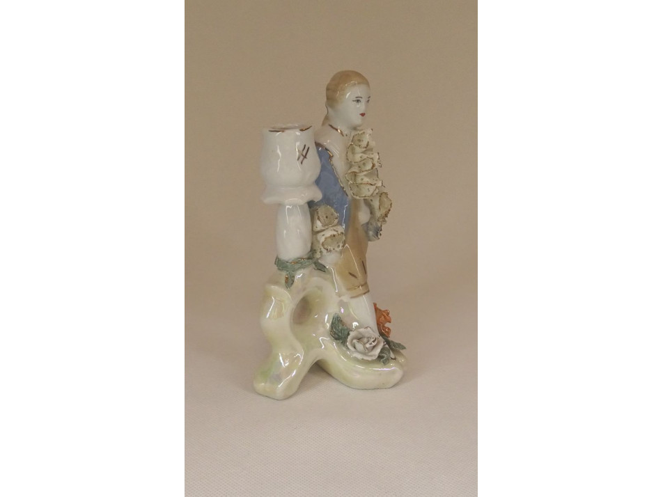 Hibátlan állapotú egyállásos figurális gyertyatartó. Gróf fodros blúzban rózsákkal.