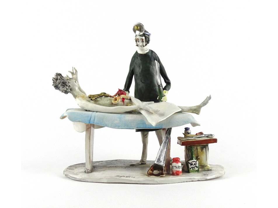 Műtét - modern karikaturaszerű Belle Duso kétalakos porcelán szobor
