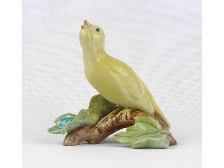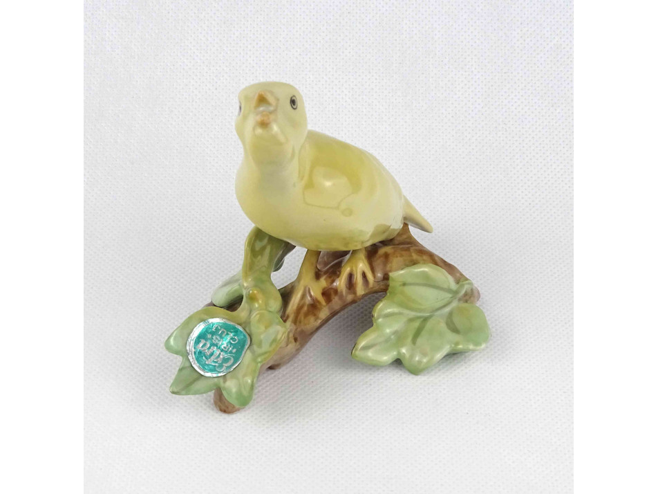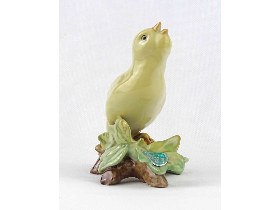 Hibátlan állapotú, jelzett Iris porcelán madár figura. Ágon ülő sárga énekesmadár.