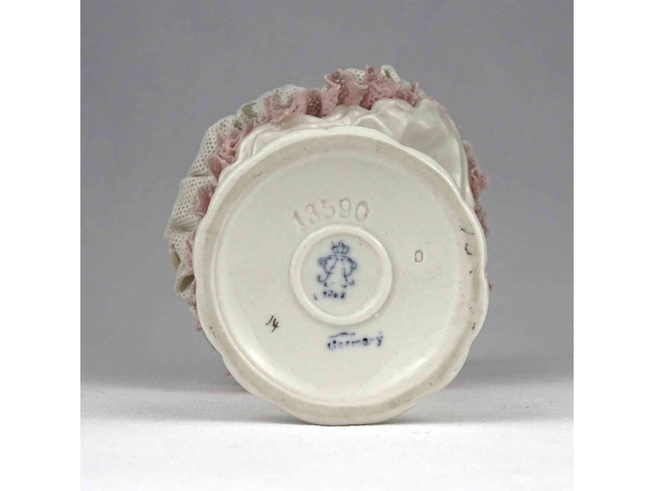 Antik tüll szoknyás Volkstedter porcelán balerina 15 cm