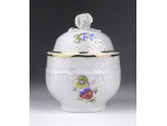 Régi apró virágmintás rózsás Hollóházi porcelán bonbonier 7.3 cm
