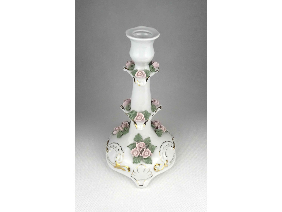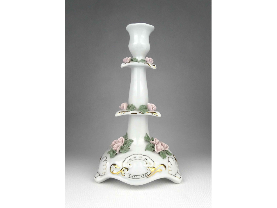 Nagyméretű rózsás Apulum porcelán gyertyatartó 24 cm