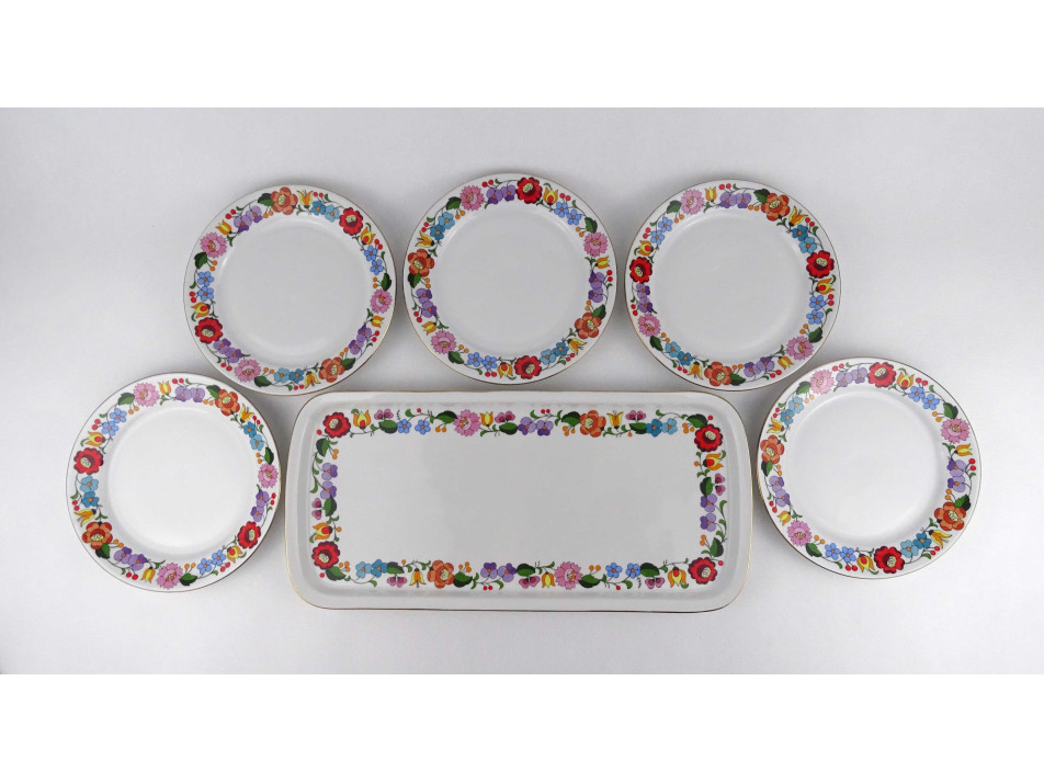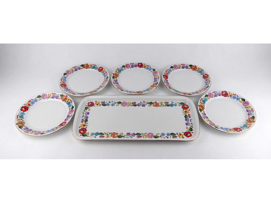 Kalocsai porcelán süteményes készlet 5 + 1 darab