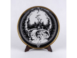 Régi aranyozott peremű levél alakú jelenetes porcelán süteményes tányérkészlet 6 darab