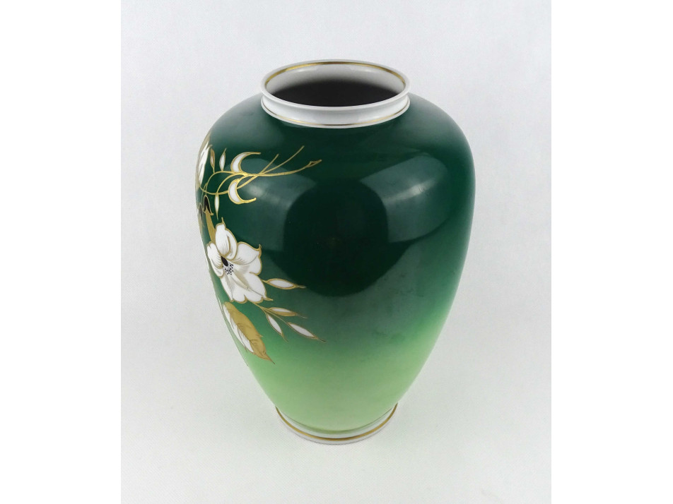 Régi nagyméretű zöld arany Wallendorf porcelán váza 29 cm