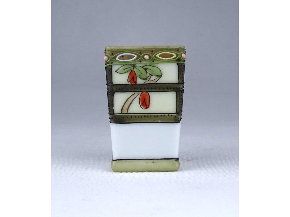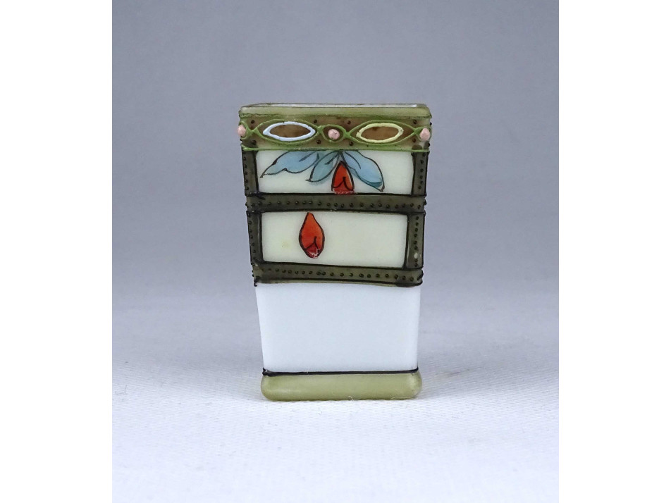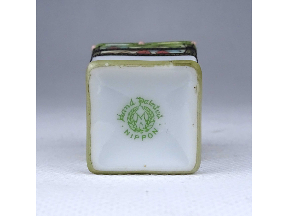 Régi kisméretű szögletes alakú japán porcelán kisváza 5.5 cm