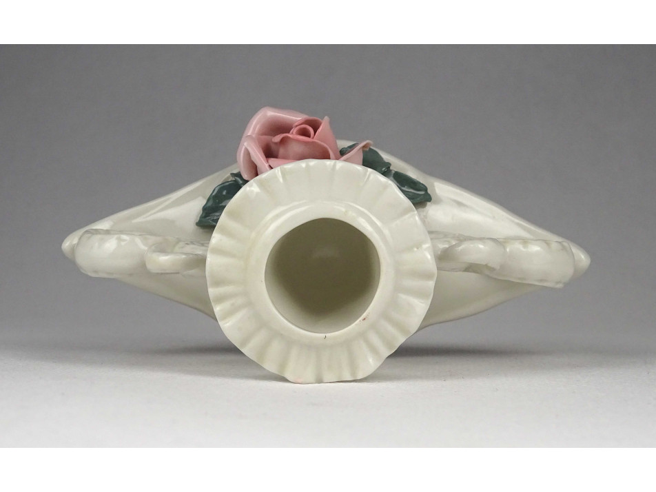 Régi kisméretű ENS porcelán gyertyatartó rózsa díszítéssel