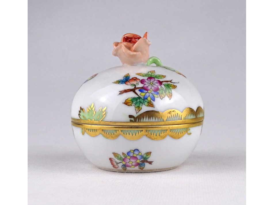 Viktória mintás Herendi porcelán bonbonier 7.5 cm