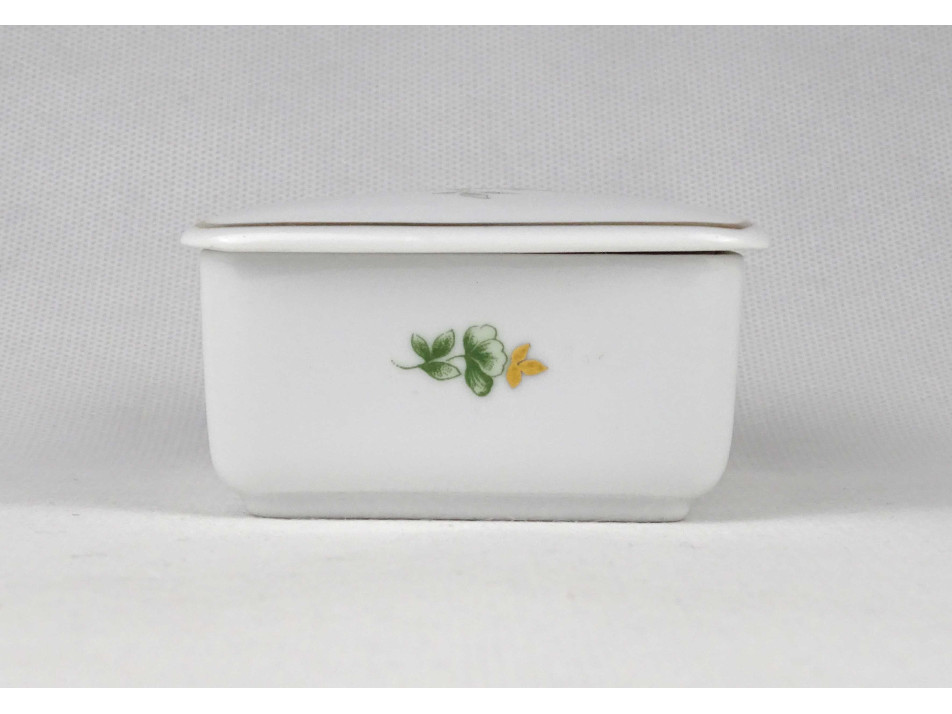 Hibátlan állapotú, zöld virágmintával díszített, I. osztályú Hollóházi porcelán, ékszertartó szelence.