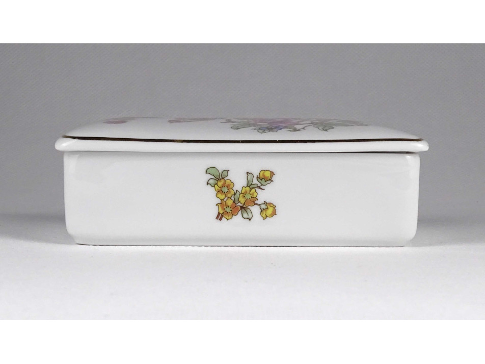 Hibátlan állapotú, paradicsommadár mintás Hollóházi porcelán ékszertartó szelence, bonbonier.