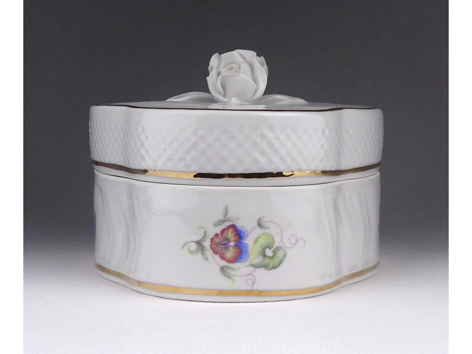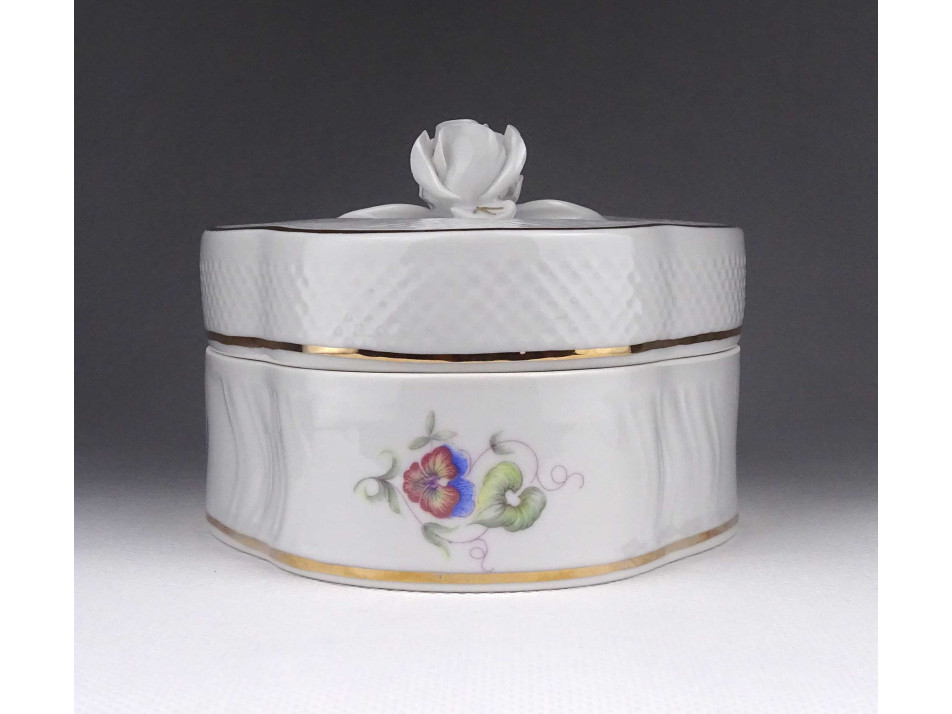 Virágmintás dupla rózsa foganytyús Hollóházi porcelán bonbonier