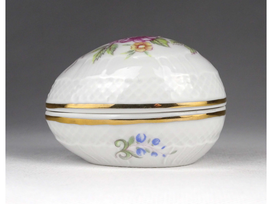 Hibátlan állapotú, virág mintás, tojás alakú porcelán gyűrűtartó, ékszertartó, bonbonier.