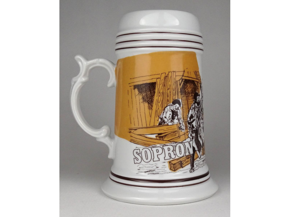 Jelzett Hollóházi porcelán söröskorsó - Sopron 1987