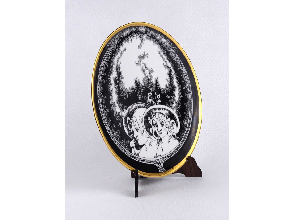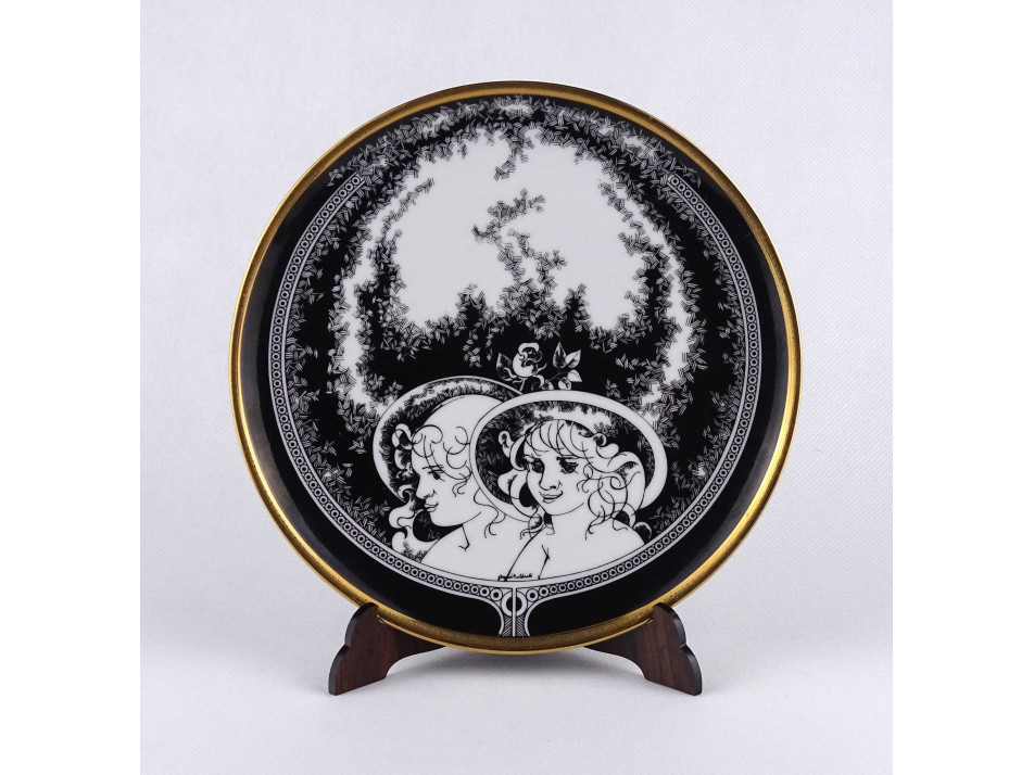 Hibátlan állapotú, I. osztályú, jelzett, falra akasztási lehetőséggel rendelkező Hollóházi porcelán fali dísztányér, dísztál. Aranyozása kopásmentes, ajándékba adható. Jurcsák László kézjegye megtalálható a tányéron, feketével a mintában.