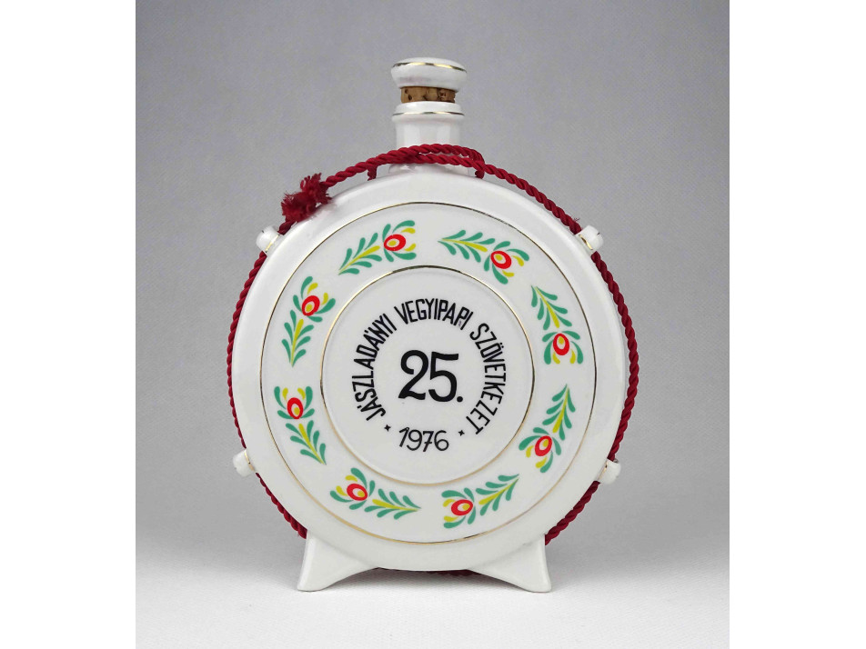 JÁSZLADÁNYI VEGYIPARI SZÖVETKEZET - Régi Hollóházi porcelán kulacs 16.5 cm