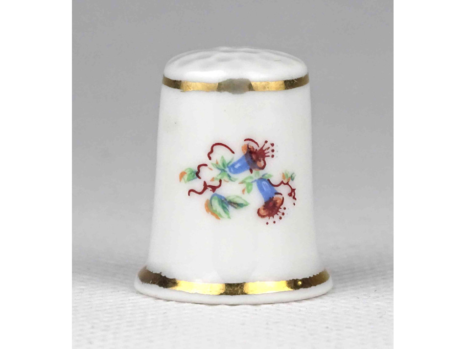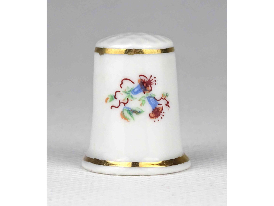 Hollóházi apró virágmintás aranyozott porcelán gyűszű