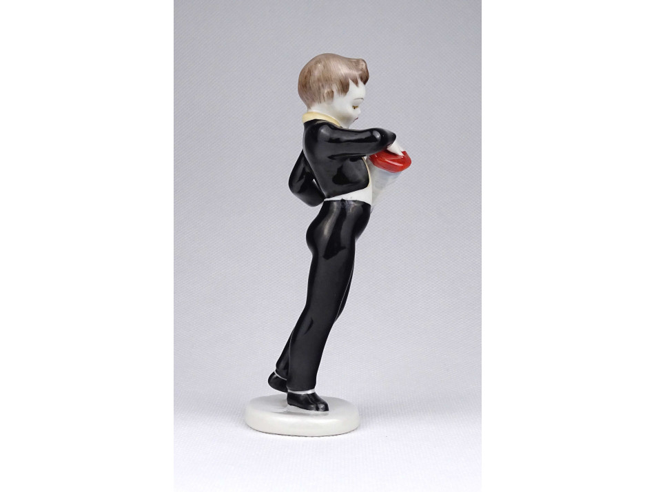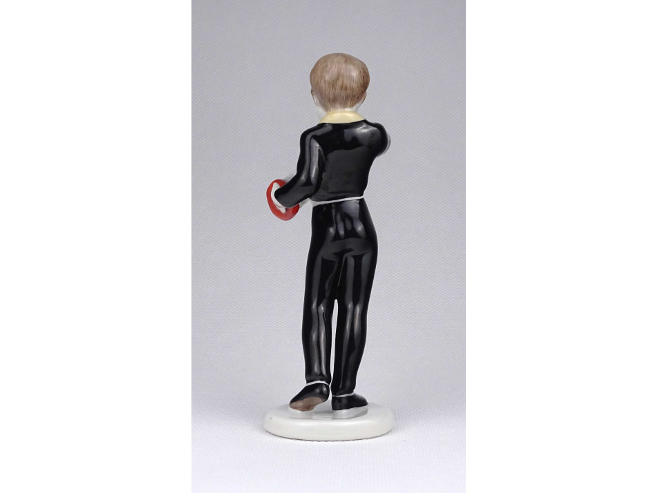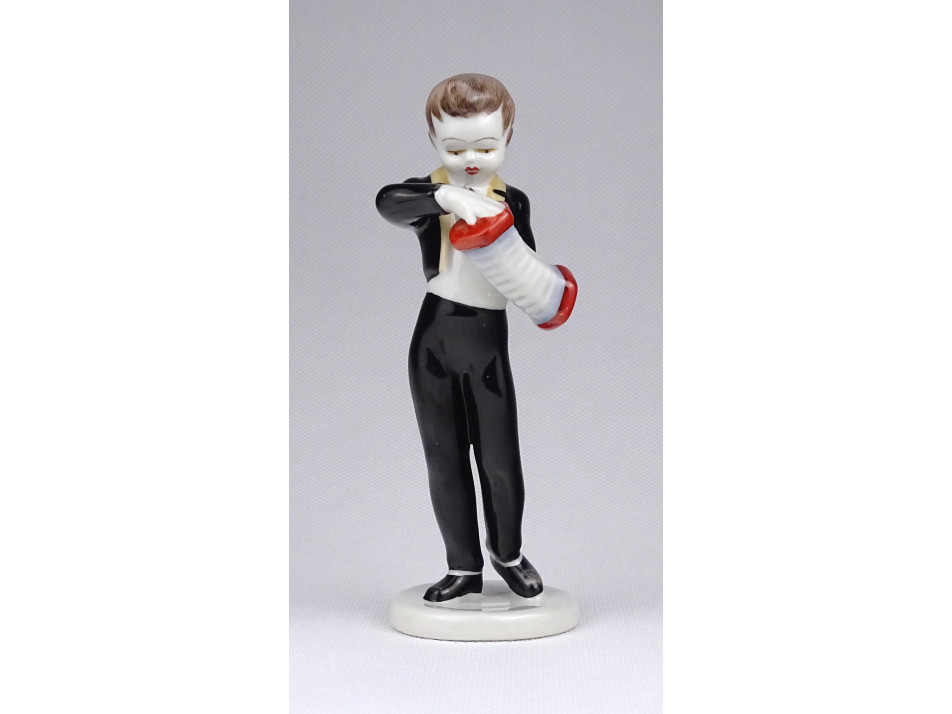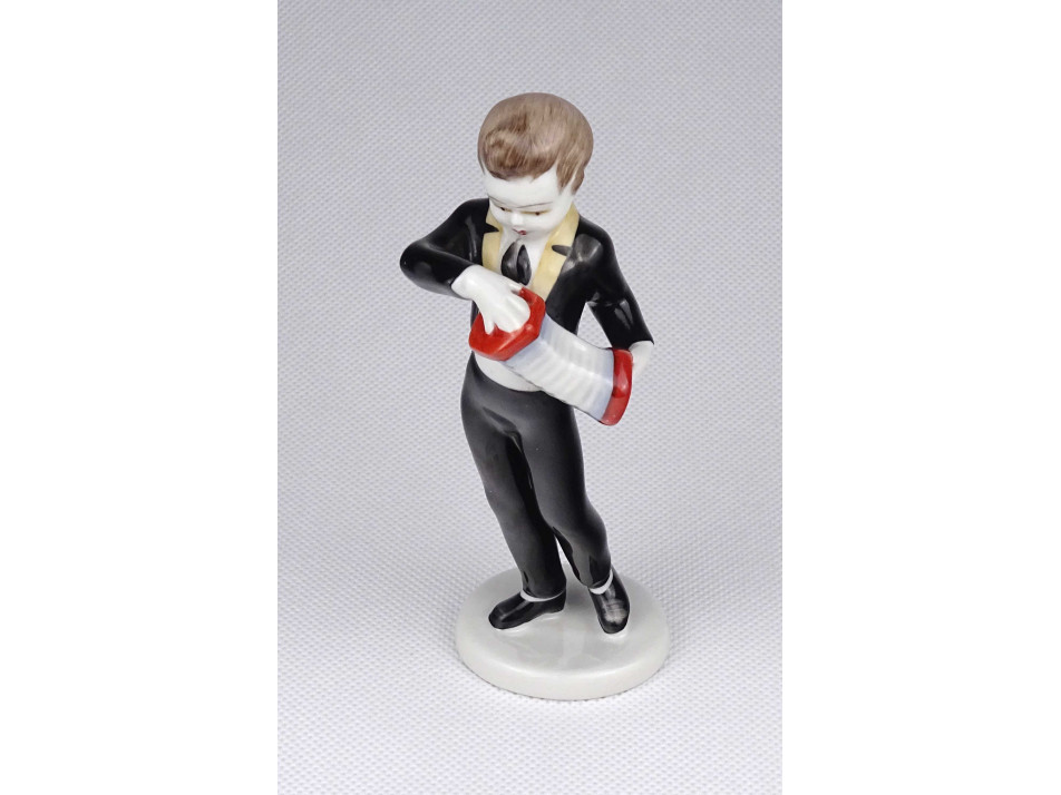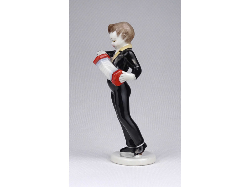 Régi Hollóházi porcelán figura, harmónikázó fiú 14.3 cm