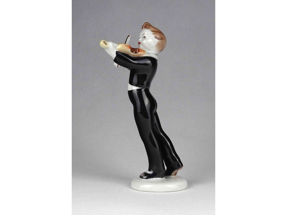 Hibátlan állapotú, Hollóházi porcelán zenész, hegedűs figura. Alján zöld márkajelzés: HOLLÓHÁZA HUNGARY 1831