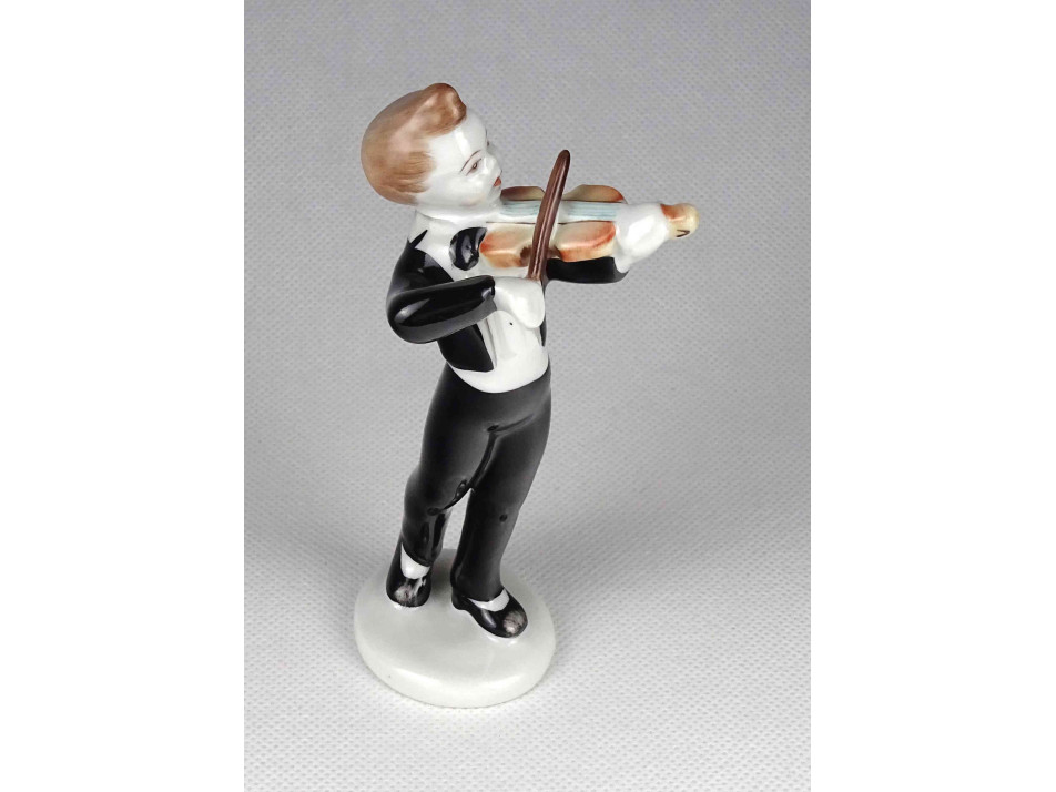 Régi Hollóházi porcelán figura hegedülő fiú 14.3 cm