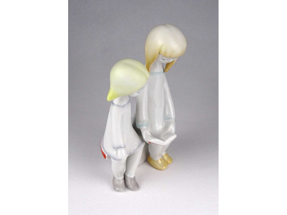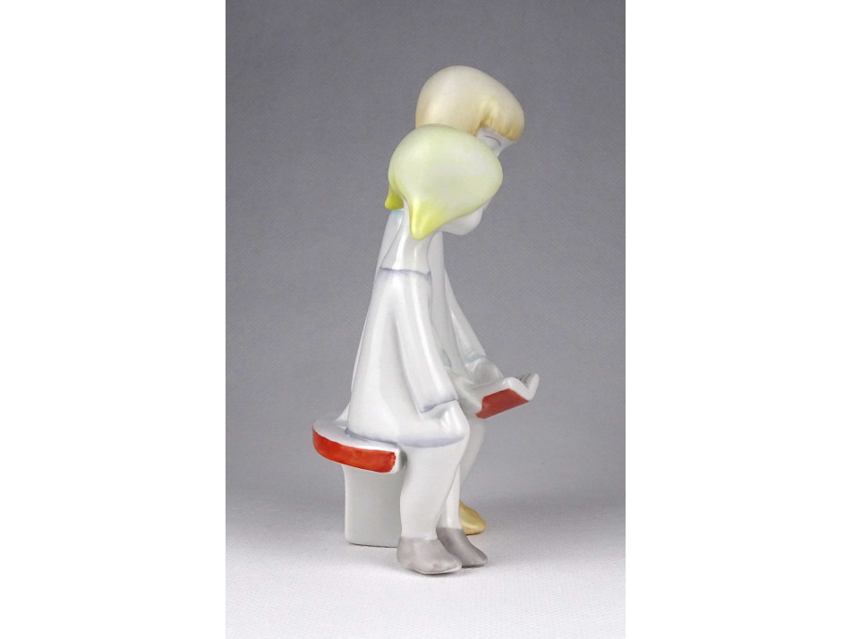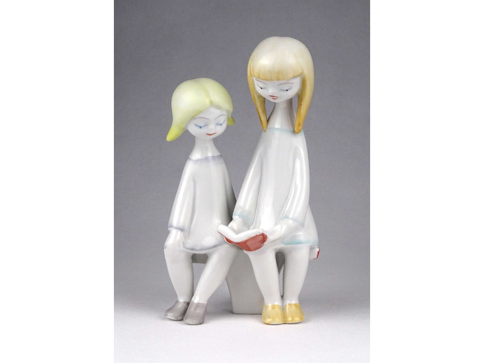Hibátlan állapotú, jelzett Hollóházi porcelán figura. Mesét olvasó kislányok.