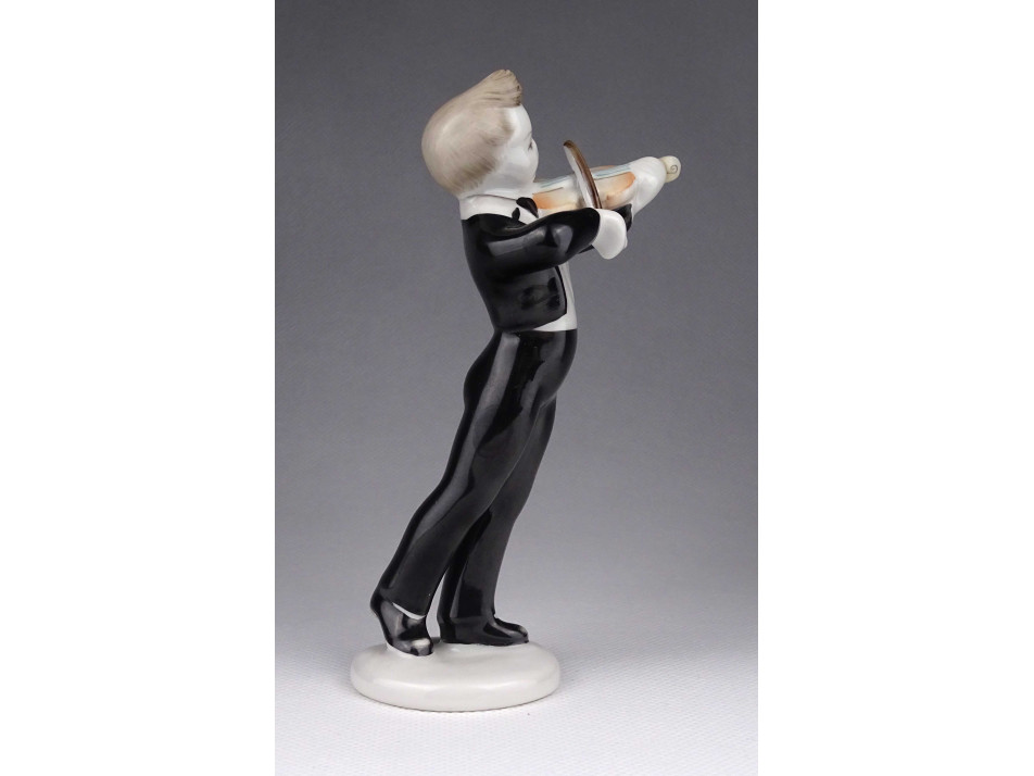 Régi Hollóházi porcelán figura hegedülő fiú 14 cm