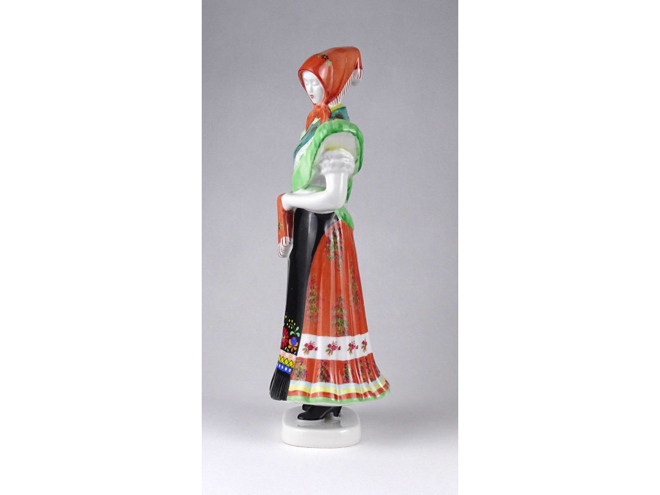Régi, hibátlan állapotú, nagyméretű Hollóházi porcelán figura, fejkendős menyecske szobor matyó népviseletben. Kézi festéssel díszített.