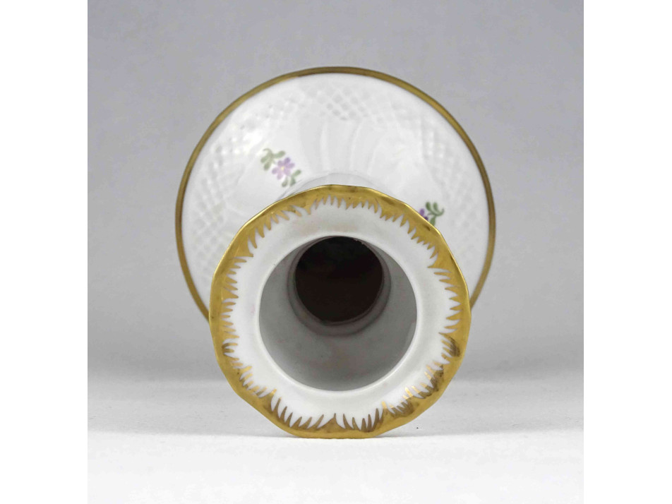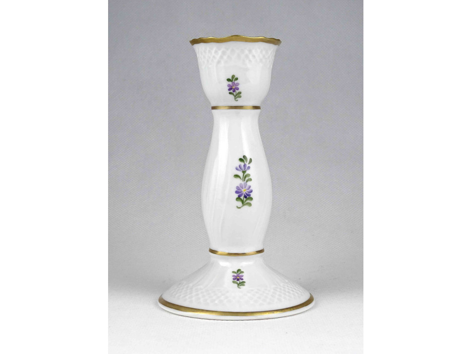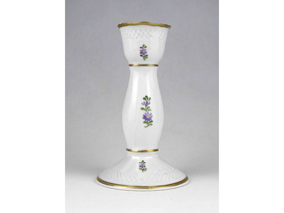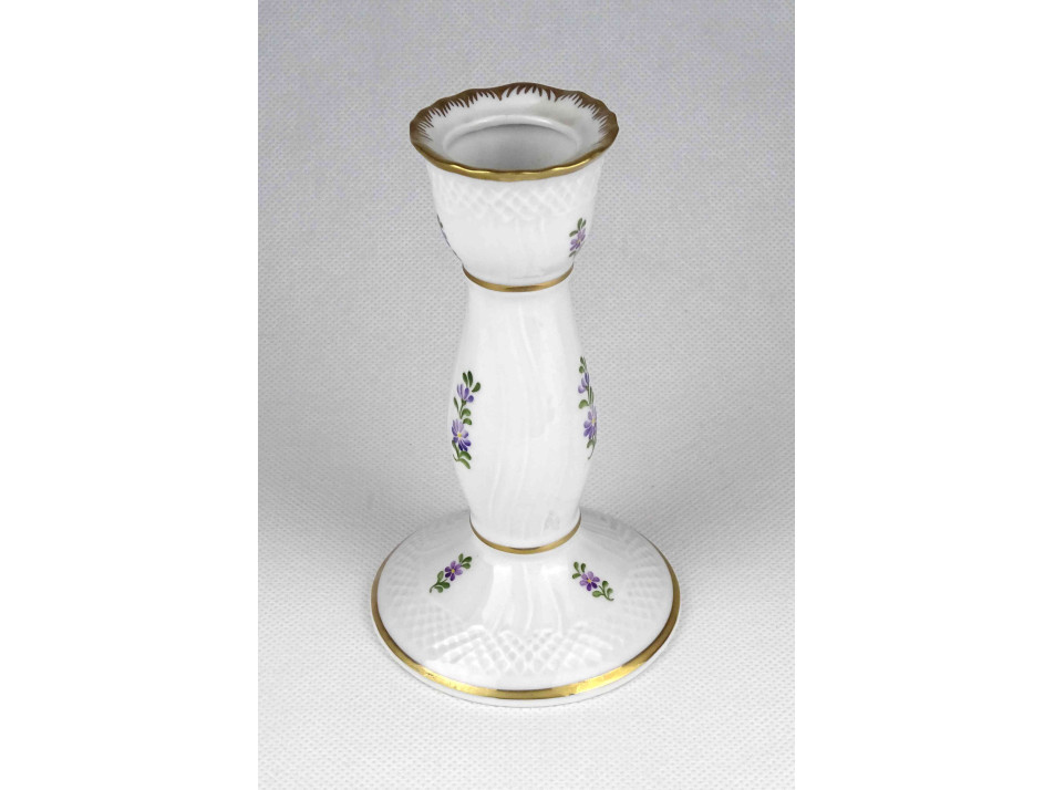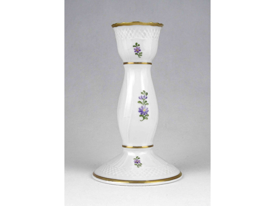 Hibátlan állapotú, virágokkal díszített, aranyozott Hollóházi porcelán gyertyatartó.