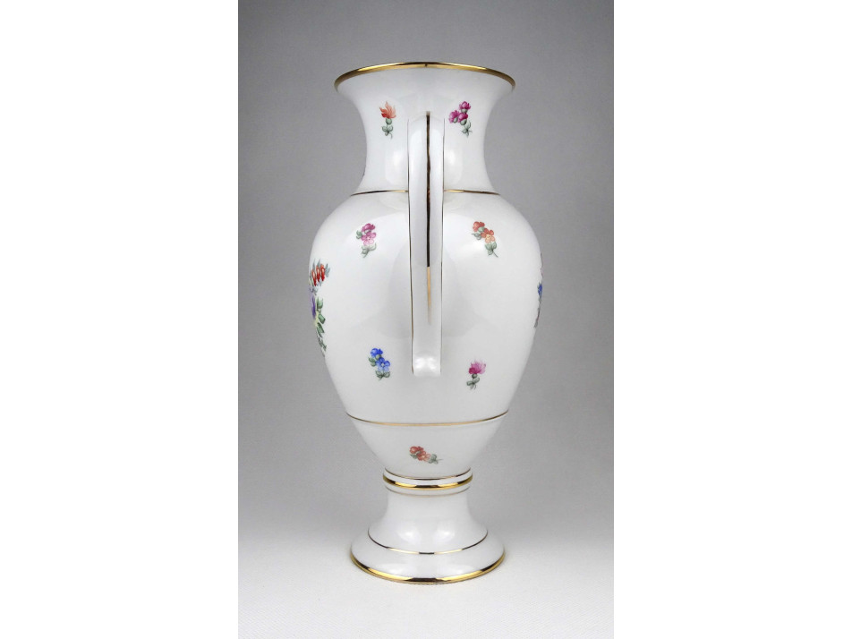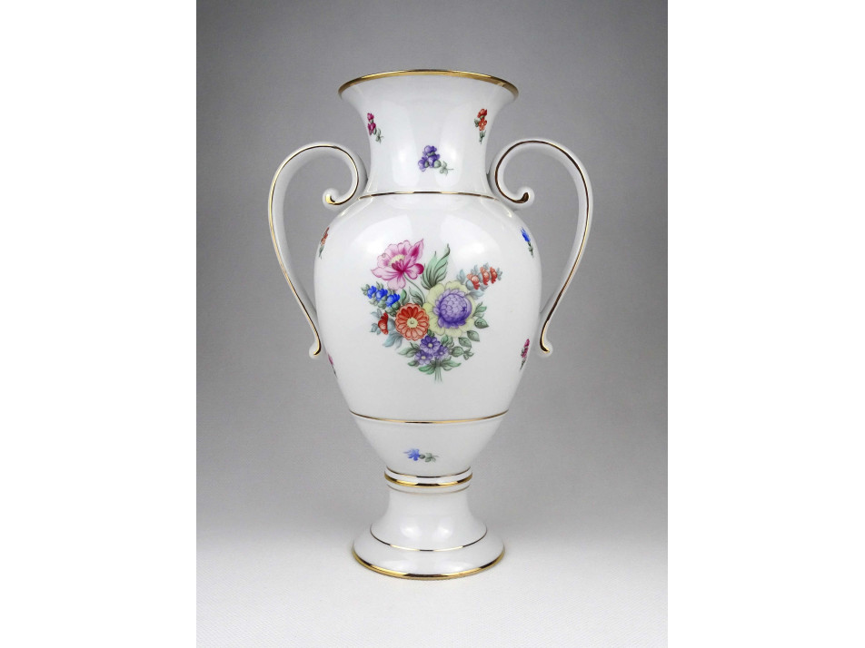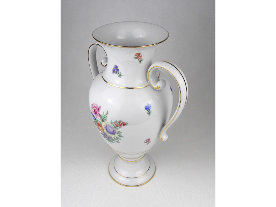Nagyméretű, virágmintás, aranyozott Hollóházi porcelán díszváza, amfóra váza.
