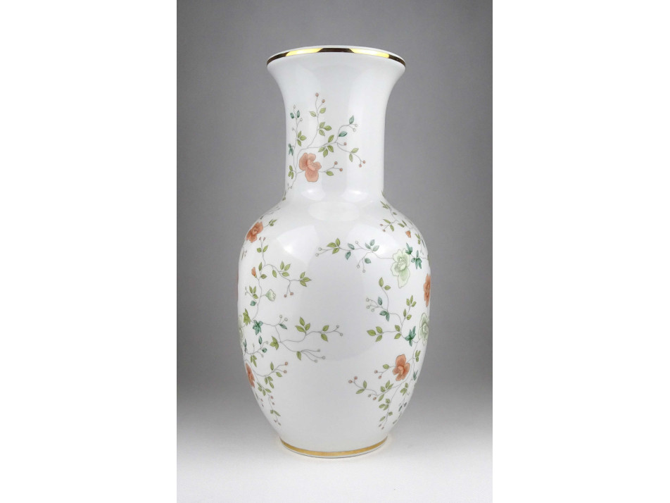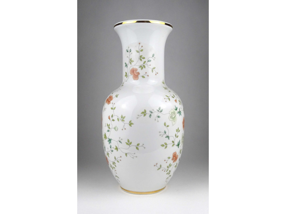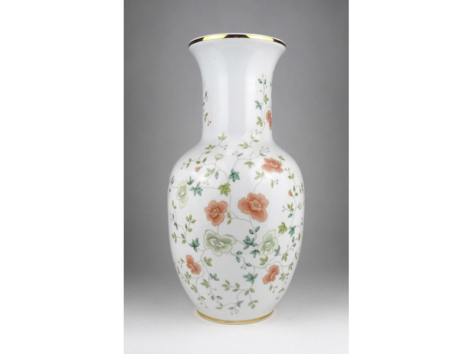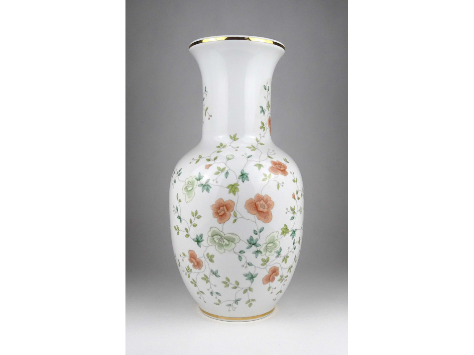 Hibátlan állapotú, virágmintával díszített, ritkán előforduló, nagy méretű, jelzett Hollóházi porcelán váza.