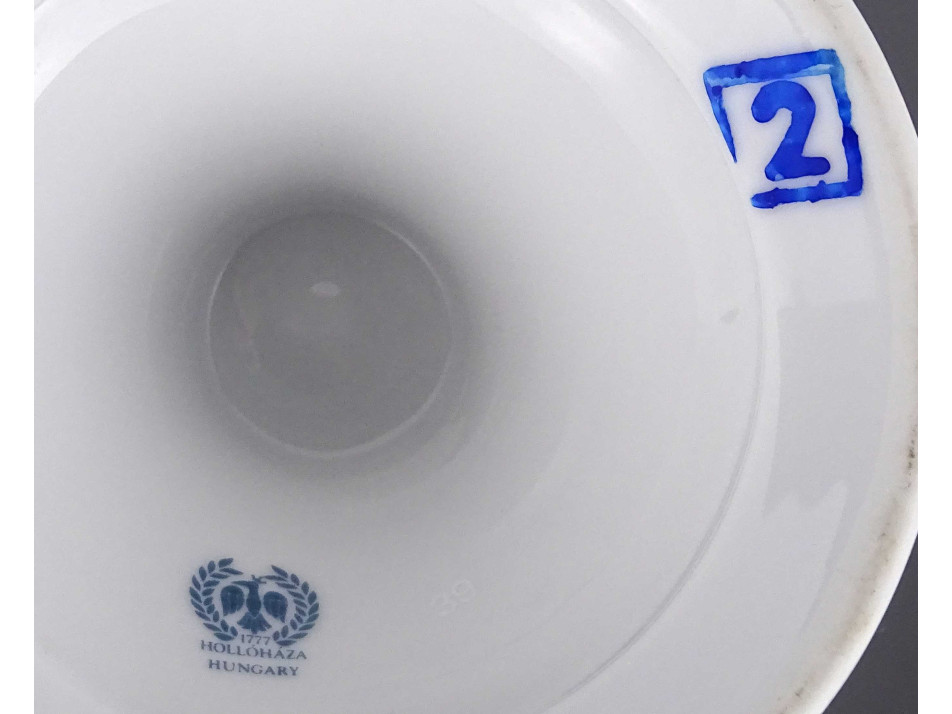 Hibátlan állapotú Hajnalka mintás Hollóházi porcelán talpas váza. Alján kék színű Hollóházi márkajelzés: 1777 HOLLÓHÁZA HUNGARY