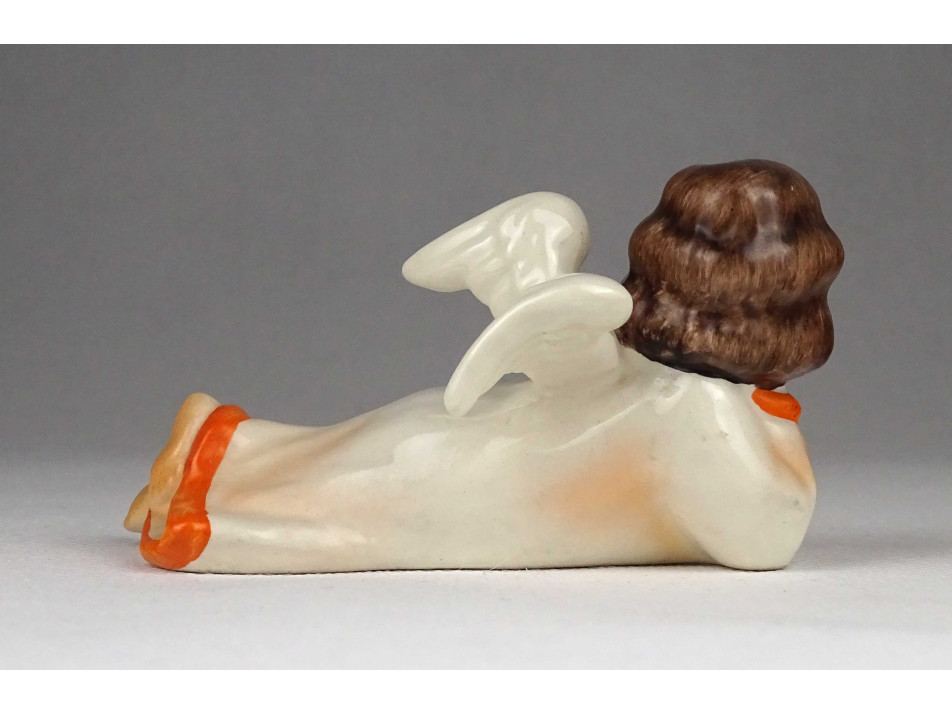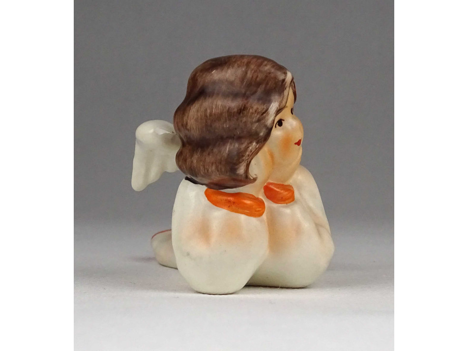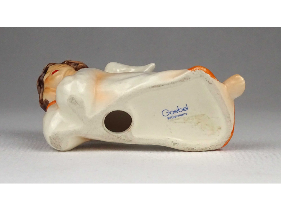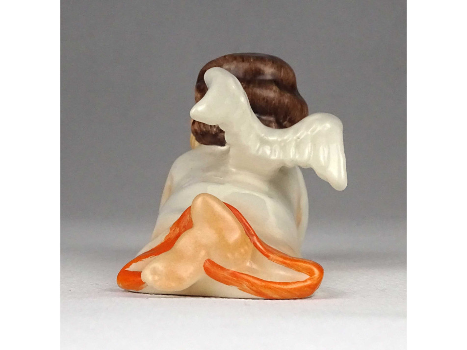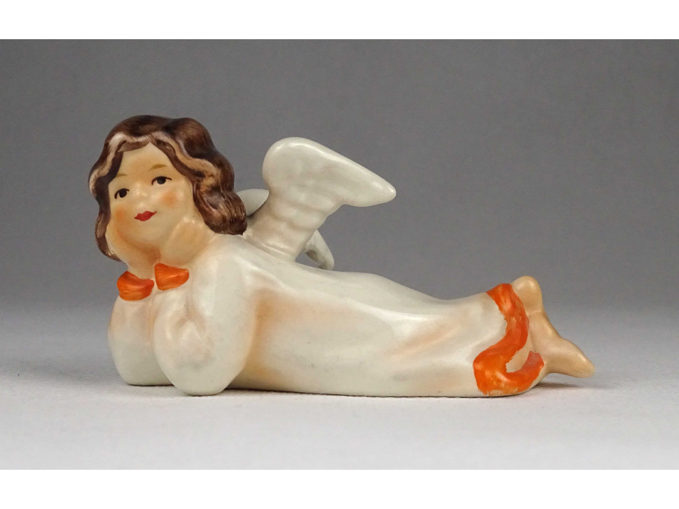Hibátlan állapotú, kisméretű, kézzel festett, jelzett Goebel porcelán fekvő angyal figura.