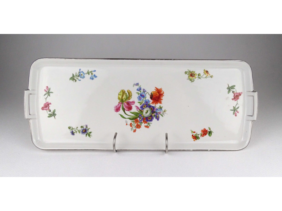 Régi virágmintás Zsolnay süteményes kínáló tálca 40 x 16 cm