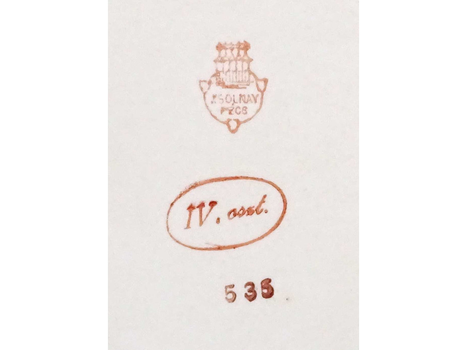 Alján narancs színű öttornyú Zsolnay márkajelzés: