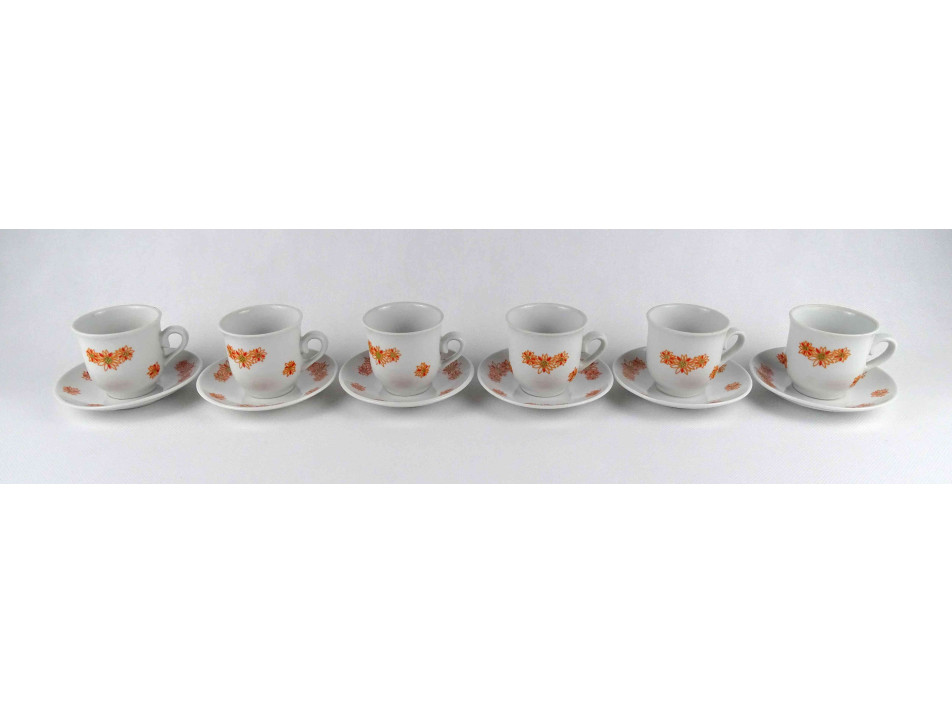 Régi narancssárga virágmintás 6 személyes Zsolnay porcelán kávés készlet