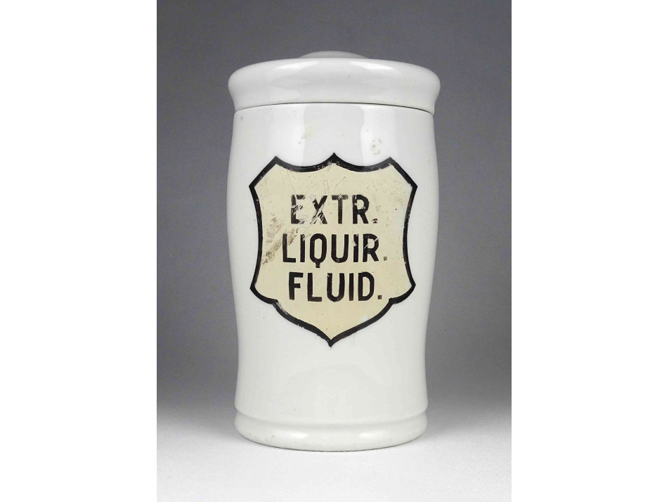 Antik Zsolnay porcelán patika tégely EXTR. LIQUIR. FLUID. - 17.5 cm
