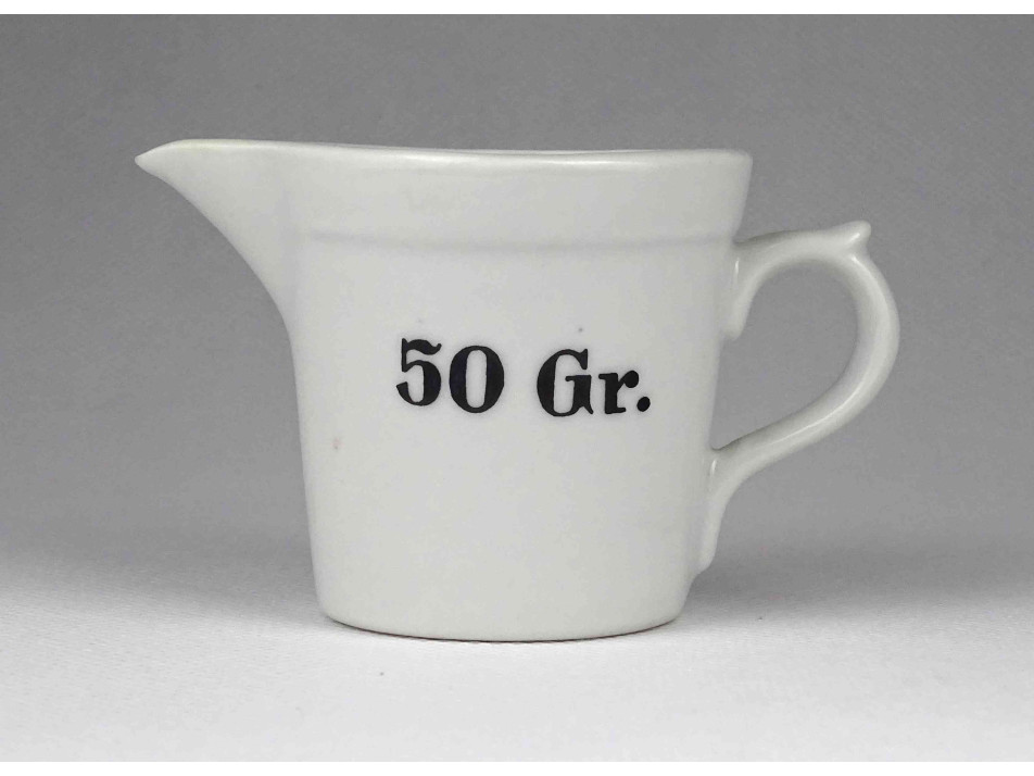 Régi gyógyszertári Zsolnay porcelán mérőedény kancsó 50 GR